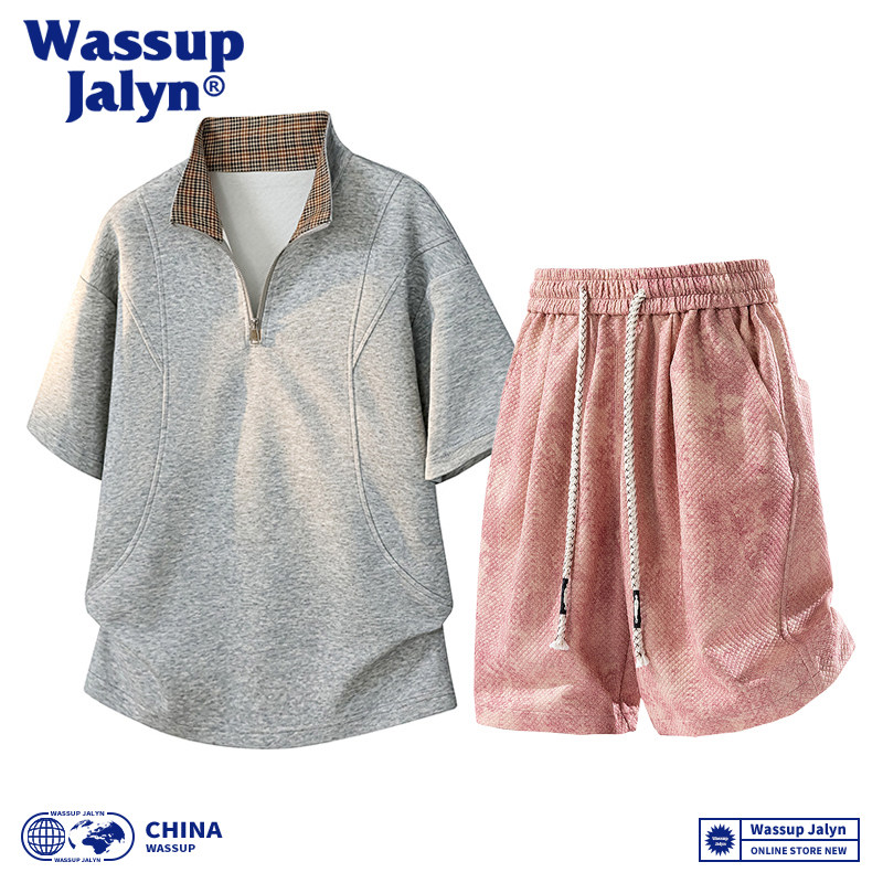WASSUP JALYN美式短袖短裤套装男款夏季潮痞帅宽松休闲运动套装男