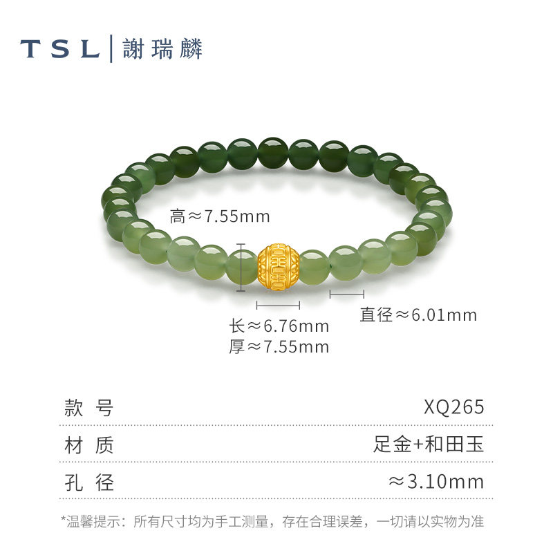 --------------------- TSL谢瑞麟国潮和田玉串珠手串吉运金珠手链新品XQ265 【原售价】1490元 【现售价】1266元 【推荐理由】