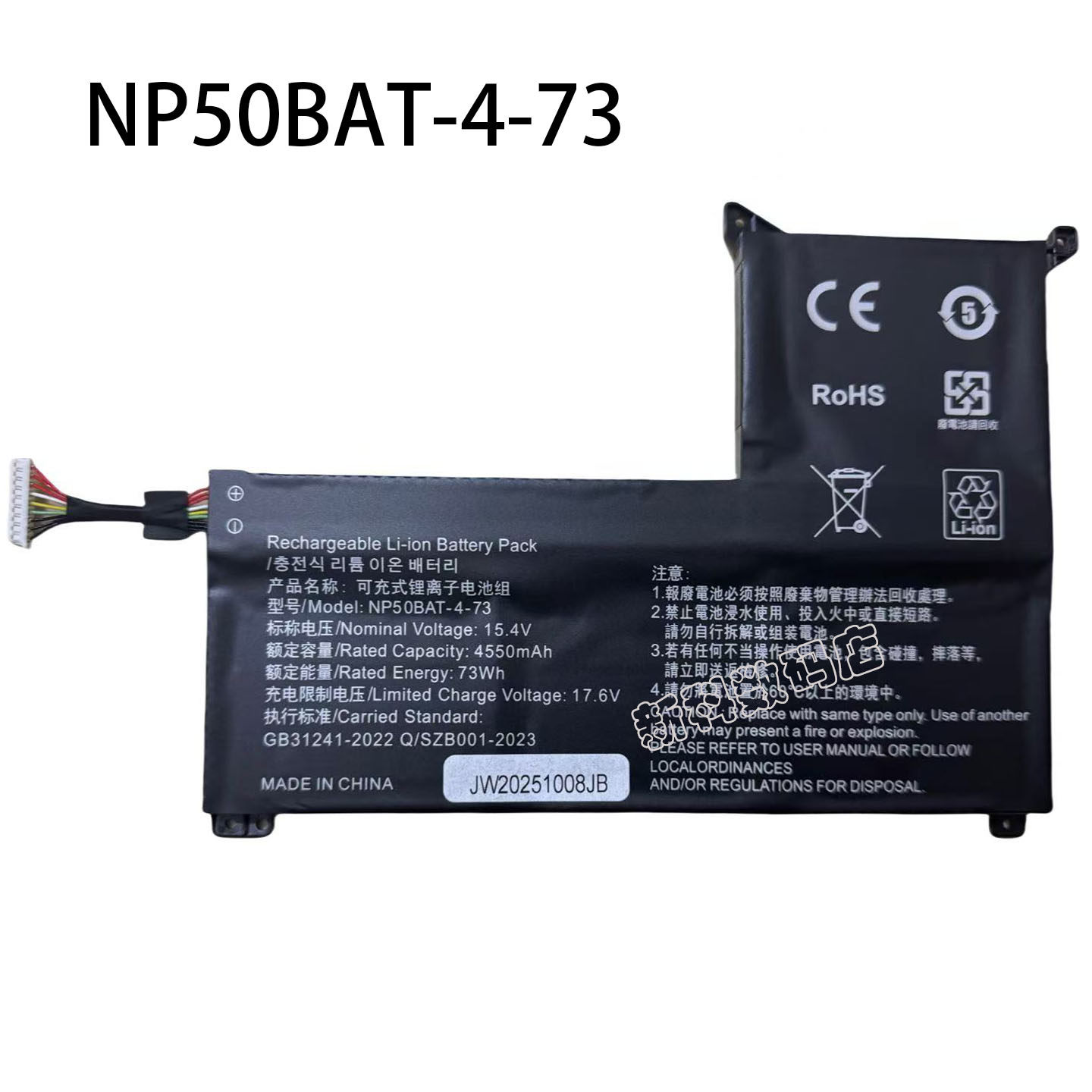适用 七彩虹 将星X15/X17 AT 23 NP50BAT-4-73 笔记本电池