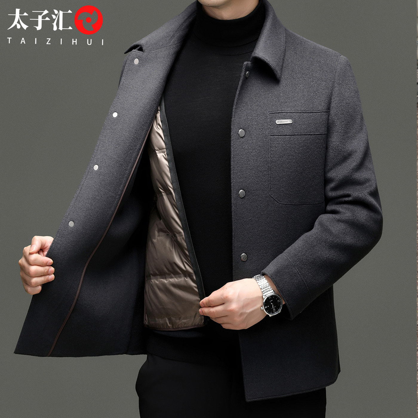 --------------------- 羊毛大衣男士夹克羽绒内胆羊毛呢外套短款紫红加厚爸爸秋冬装上衣 【原售价】798元 【现售价】427元 【推荐理由】