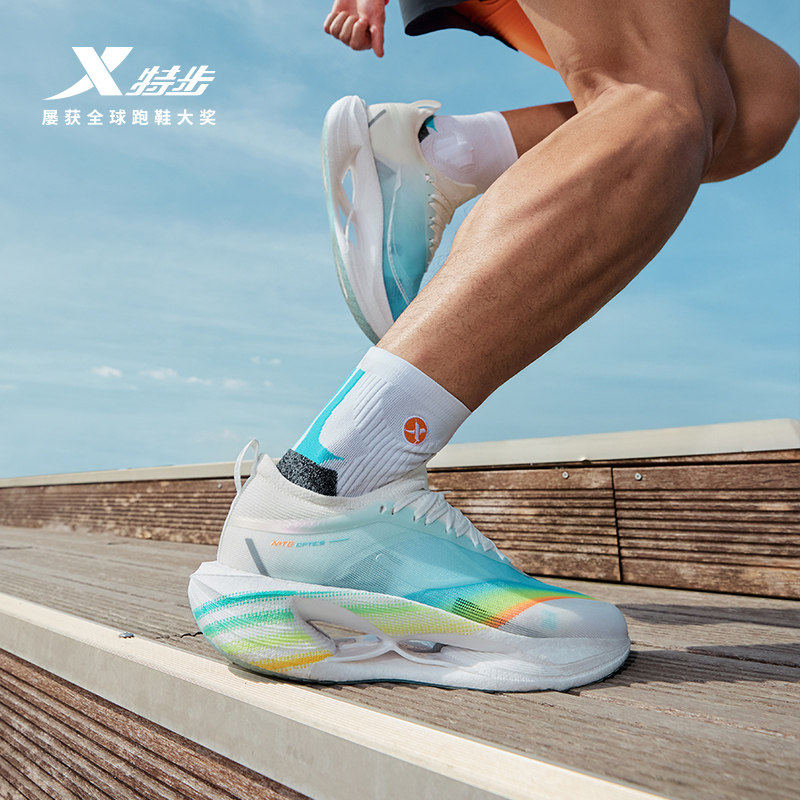 特步跑步鞋彩云男专业比赛马拉松体育体测健身旗舰跑鞋粉青国潮