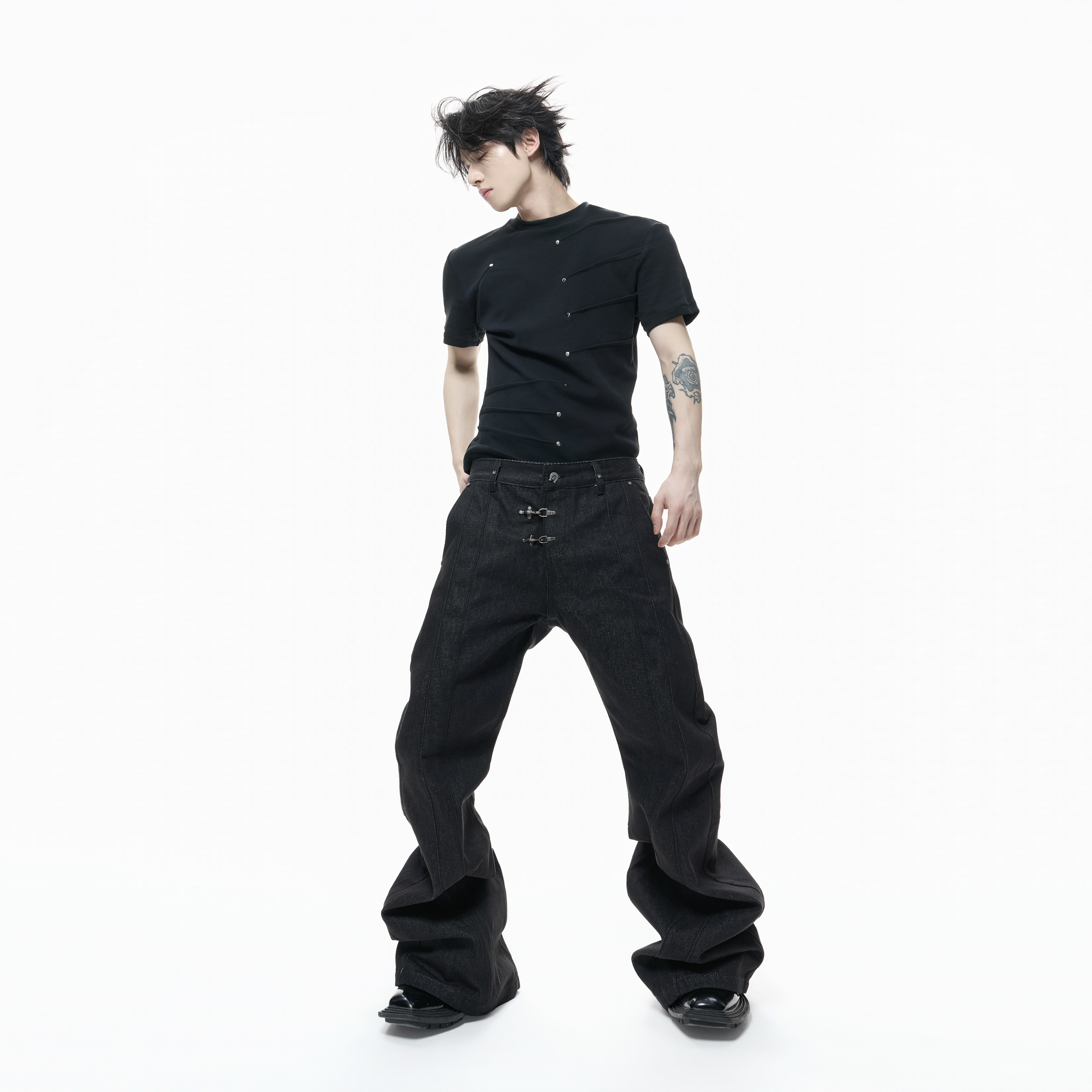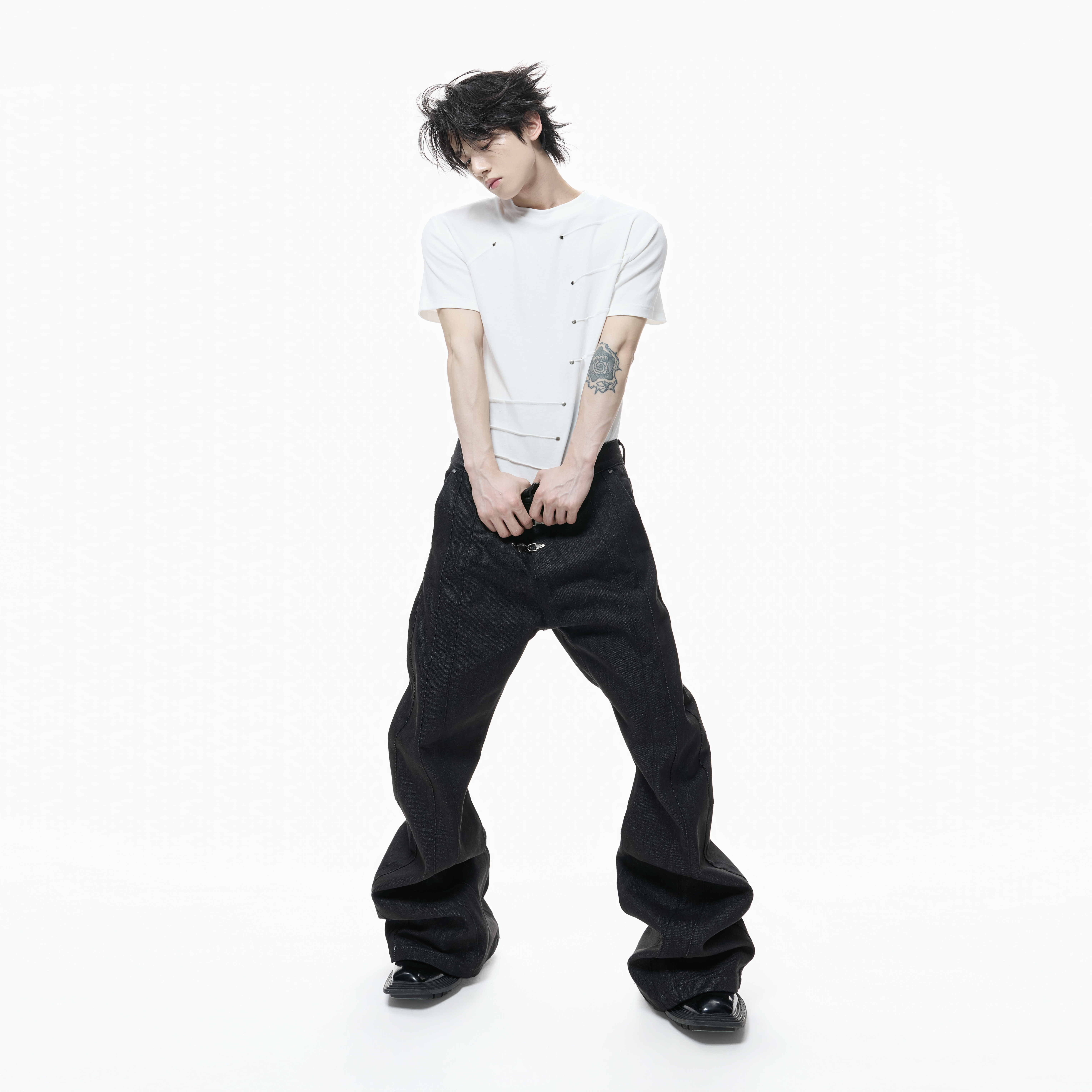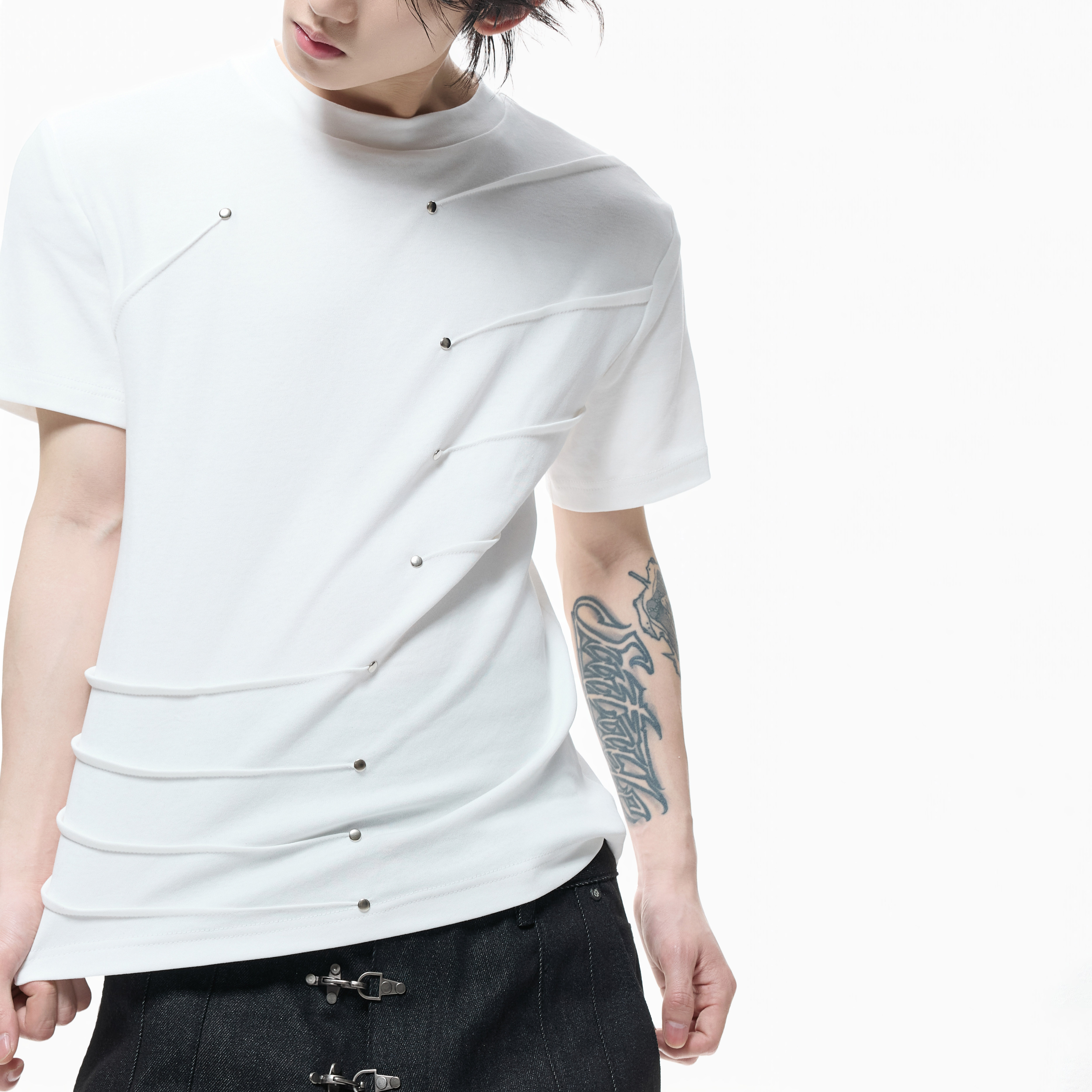ArguE脊骨*小众金属铆钉圆领正肩短袖T恤百搭修身高级感纯色上衣