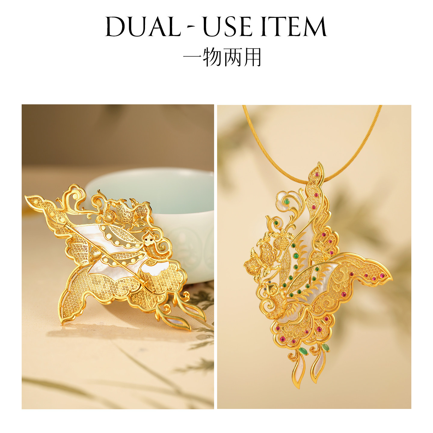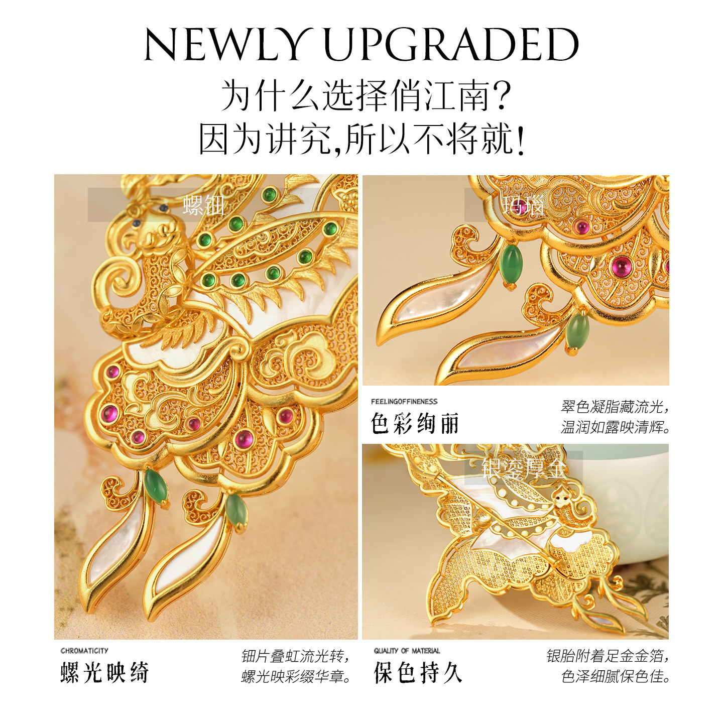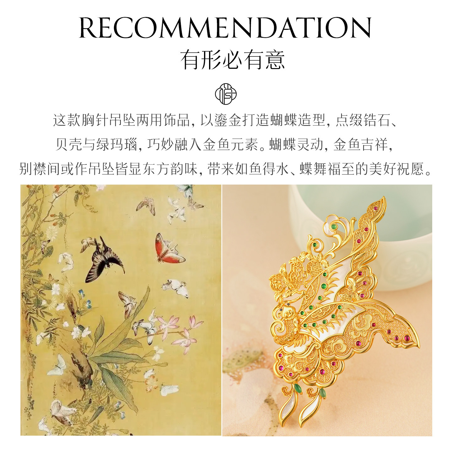 淘宝蝴蝶银鎏金胸针非遗花丝镂空螺钿新中式鱼尾蝶恋花纯纯银胸花吊坠