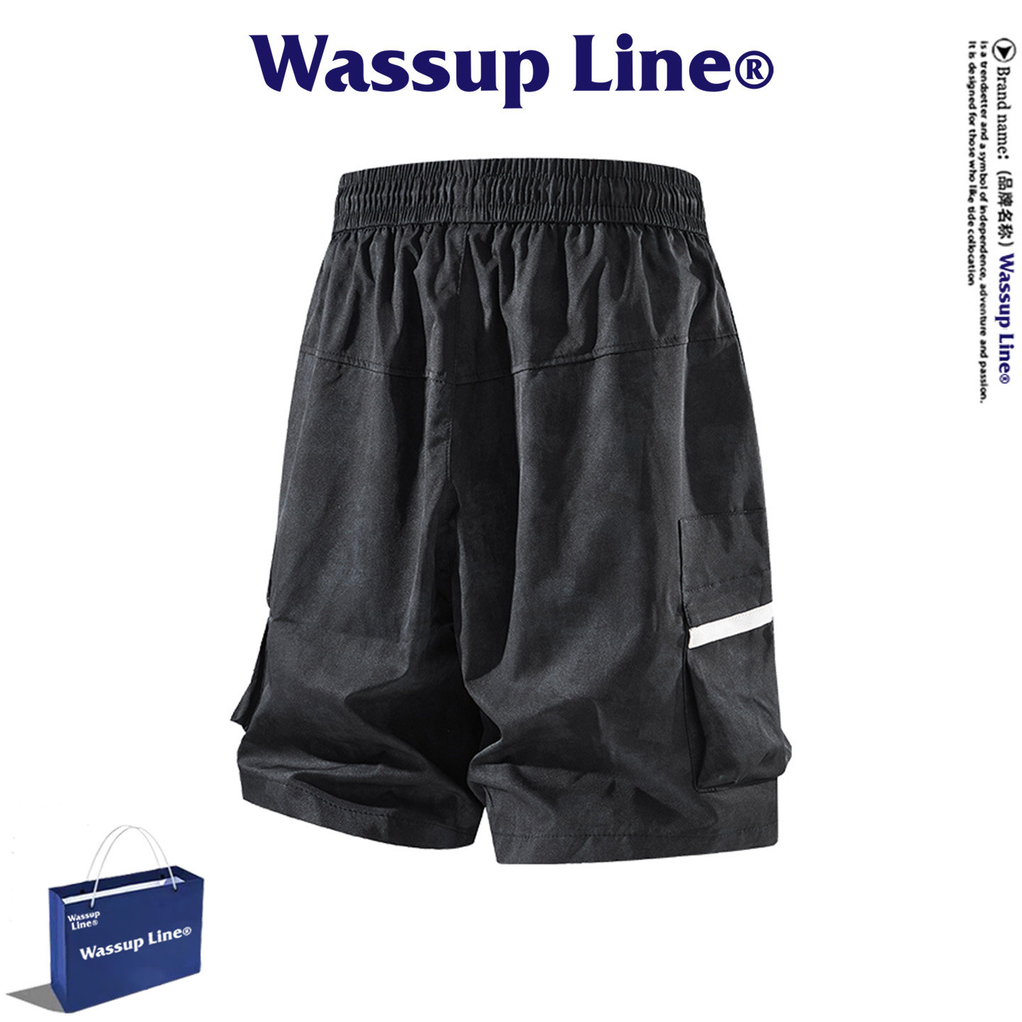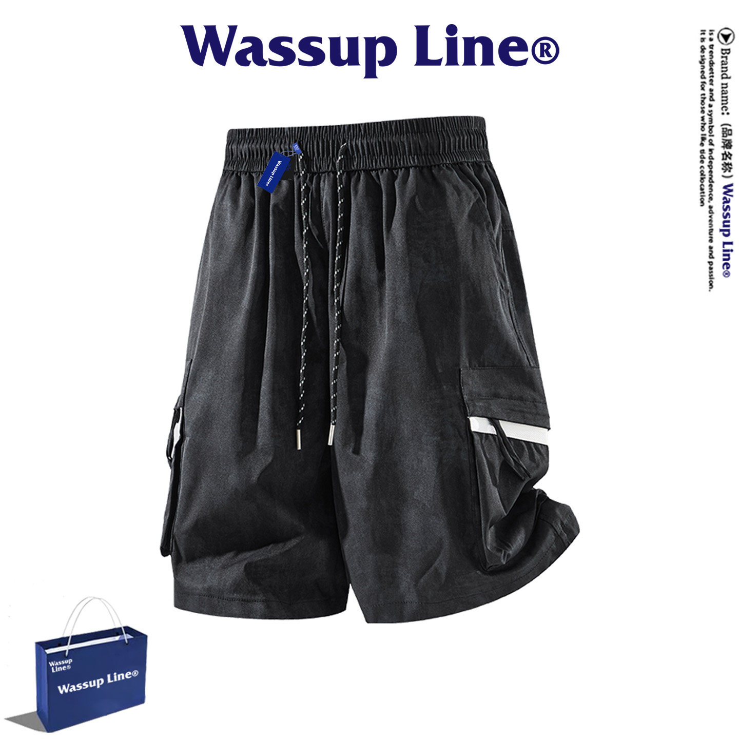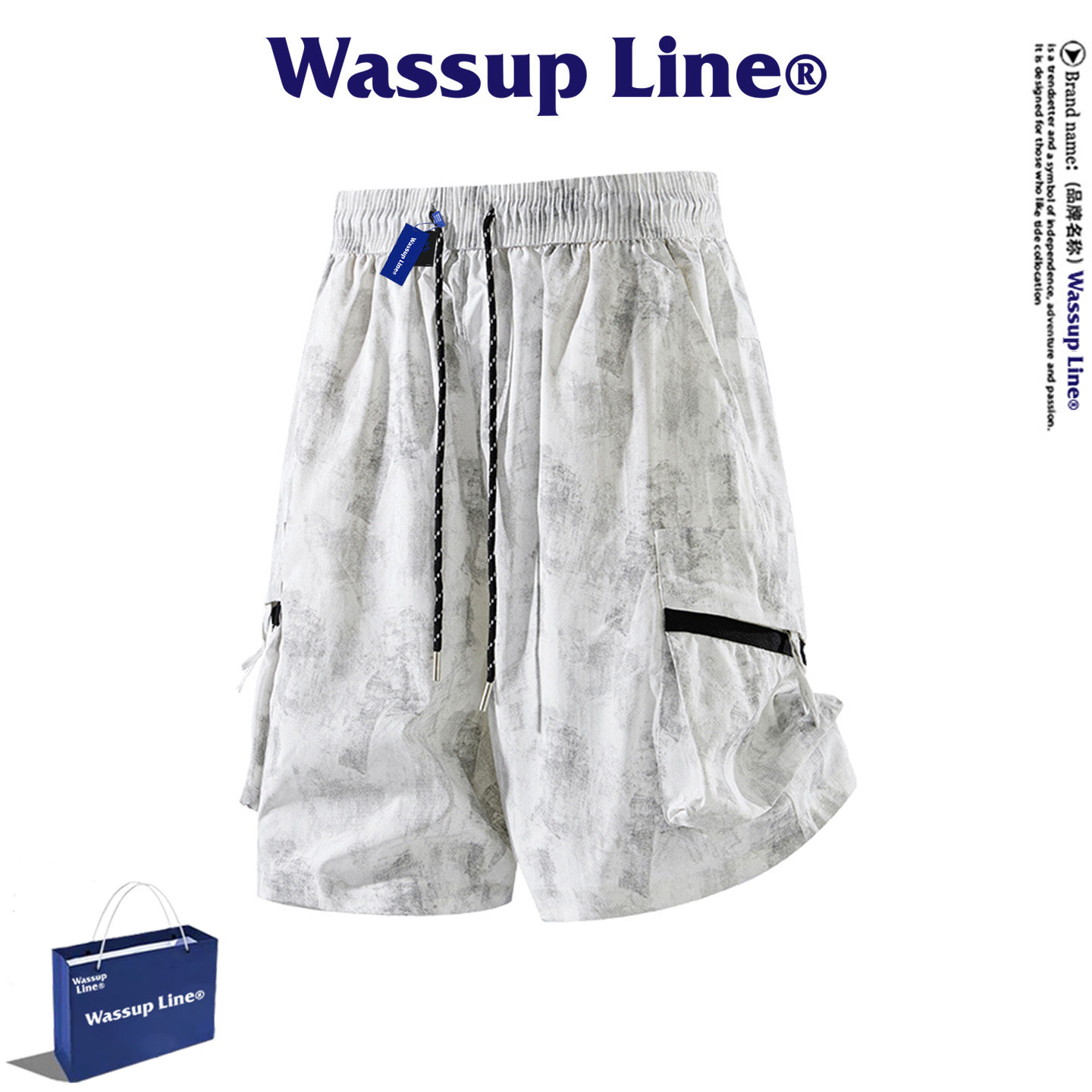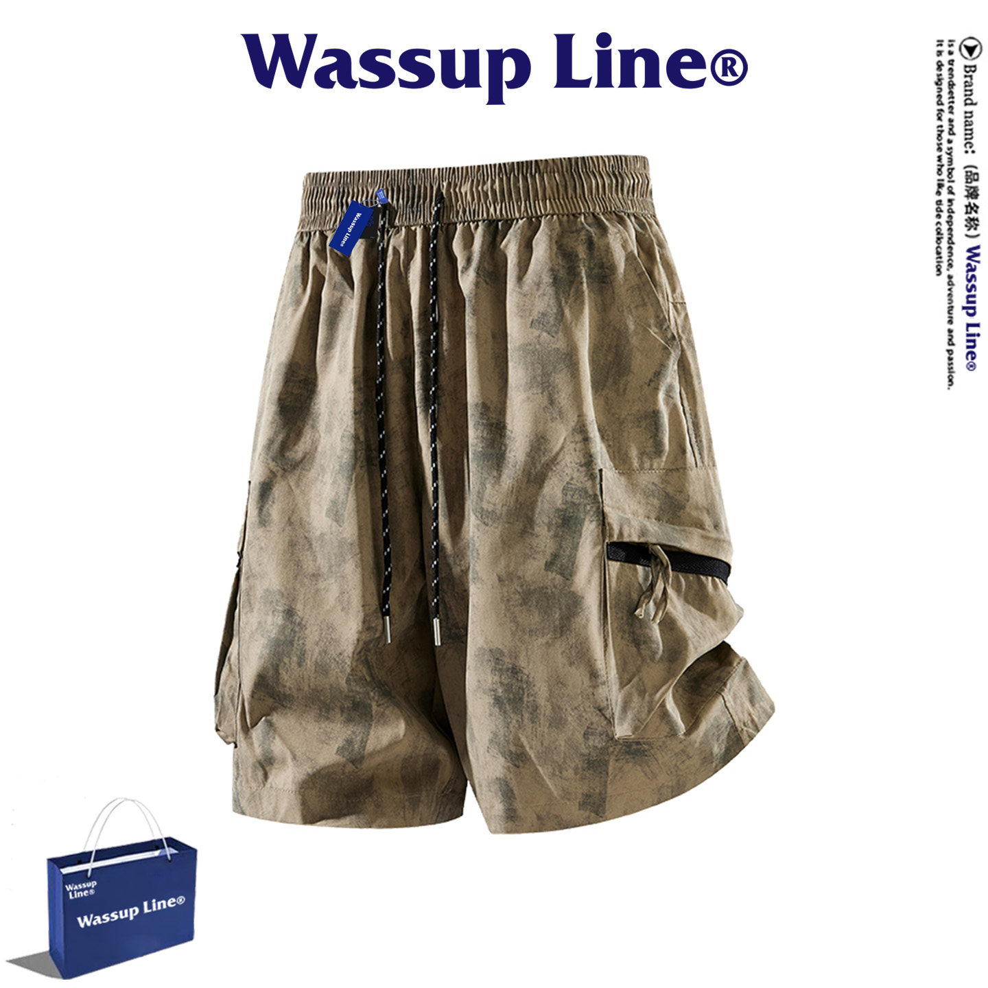 淘宝WASSUP Line潮牌百搭五分裤男夏季美式休闲设计感扎染工装短裤