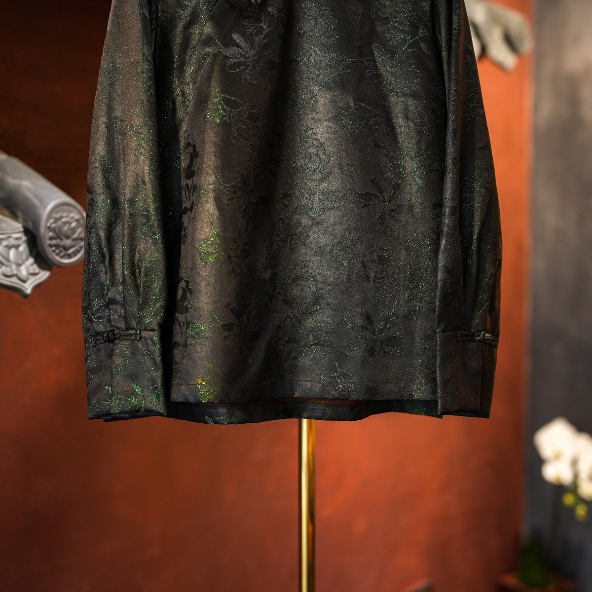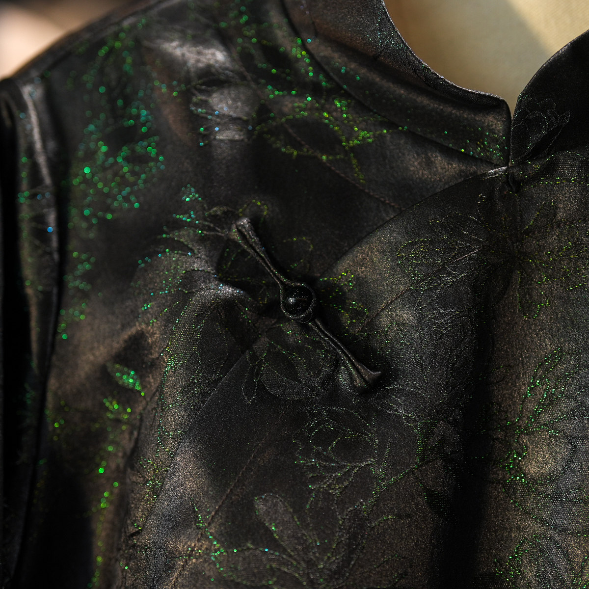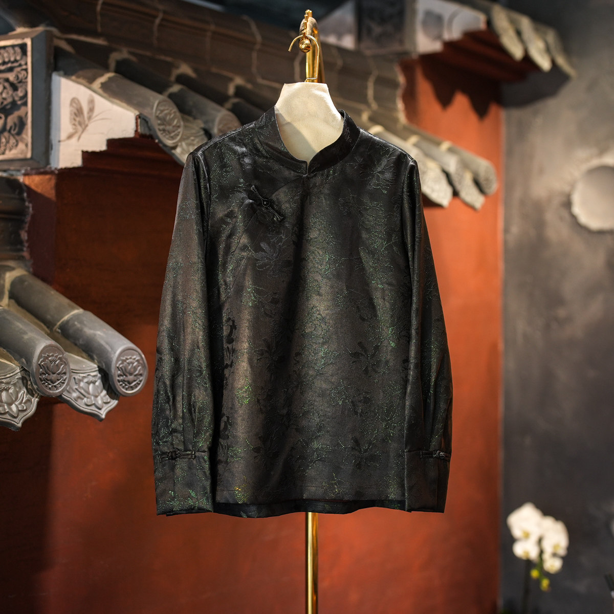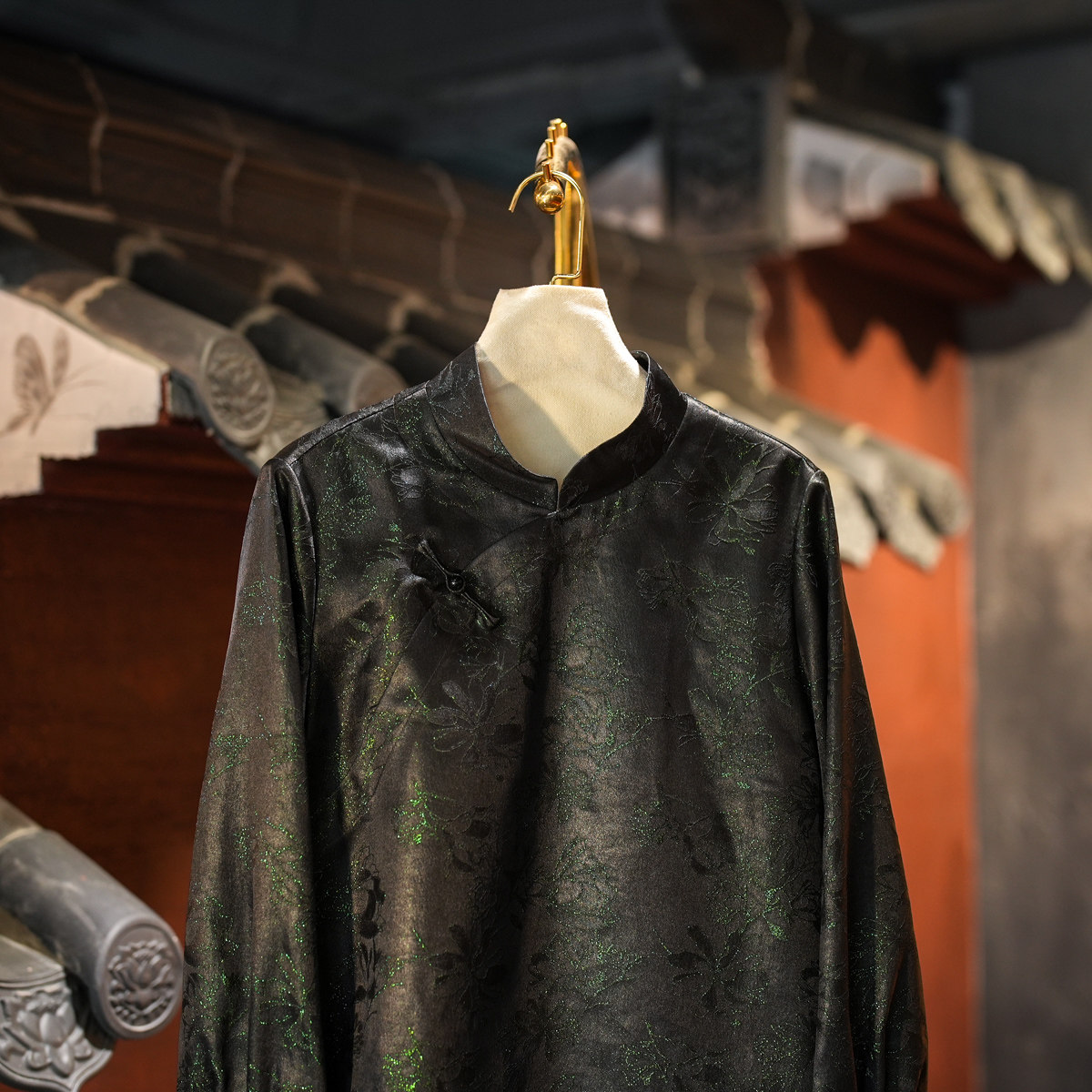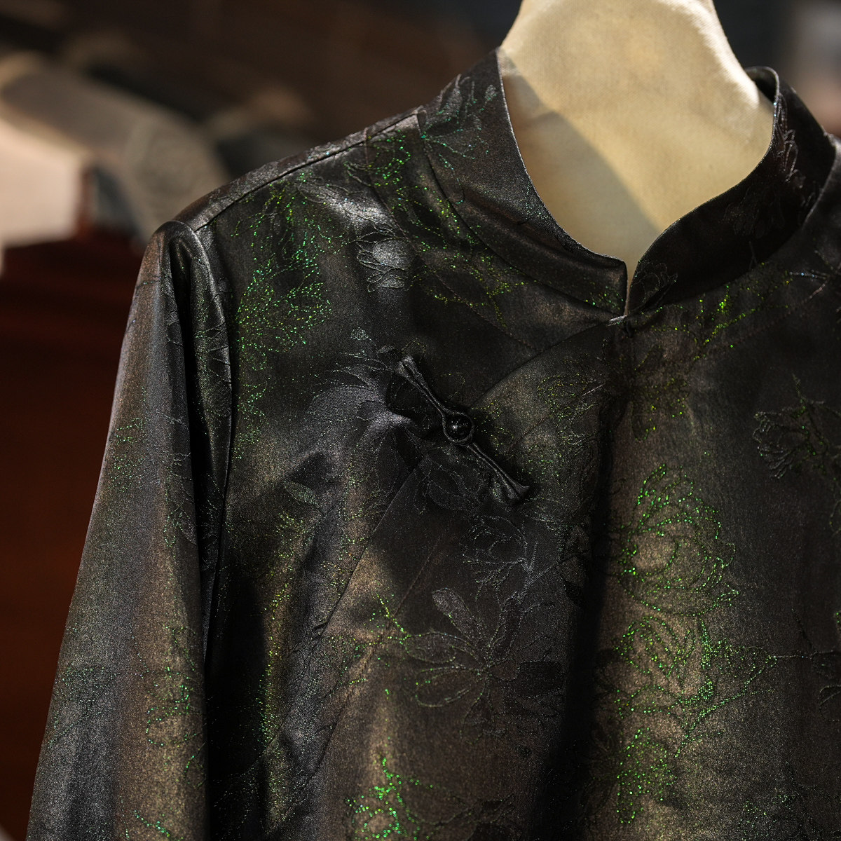 淘宝蓝大原创女装复古盘扣立领非遗香云纱大码显瘦长袖桑蚕丝上衣5792