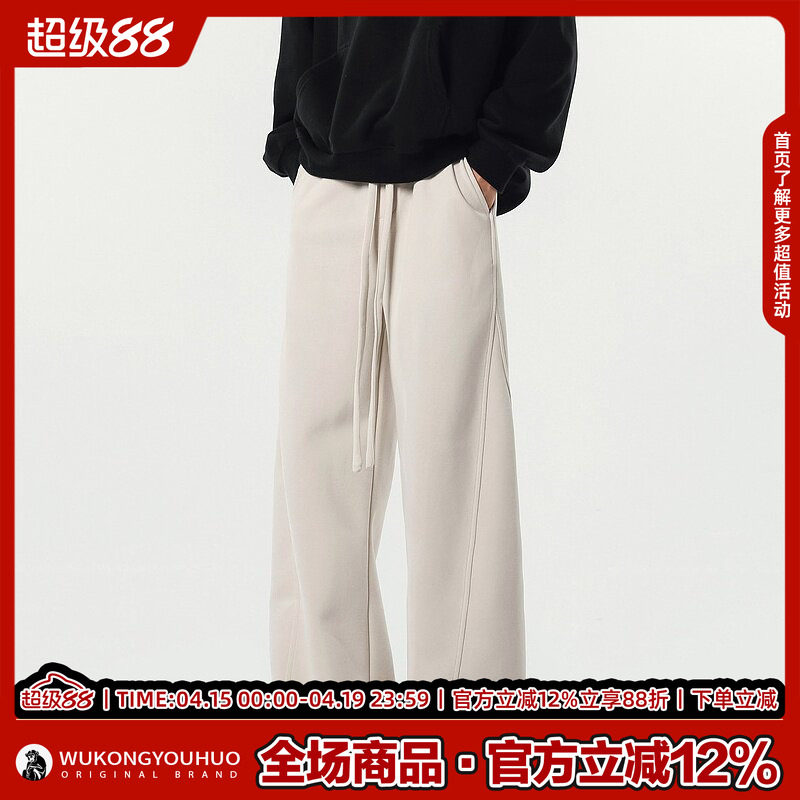 悟空有货街头复古纯色垂感弯刀运动裤男潮牌宽松灰色百搭休闲卫裤
