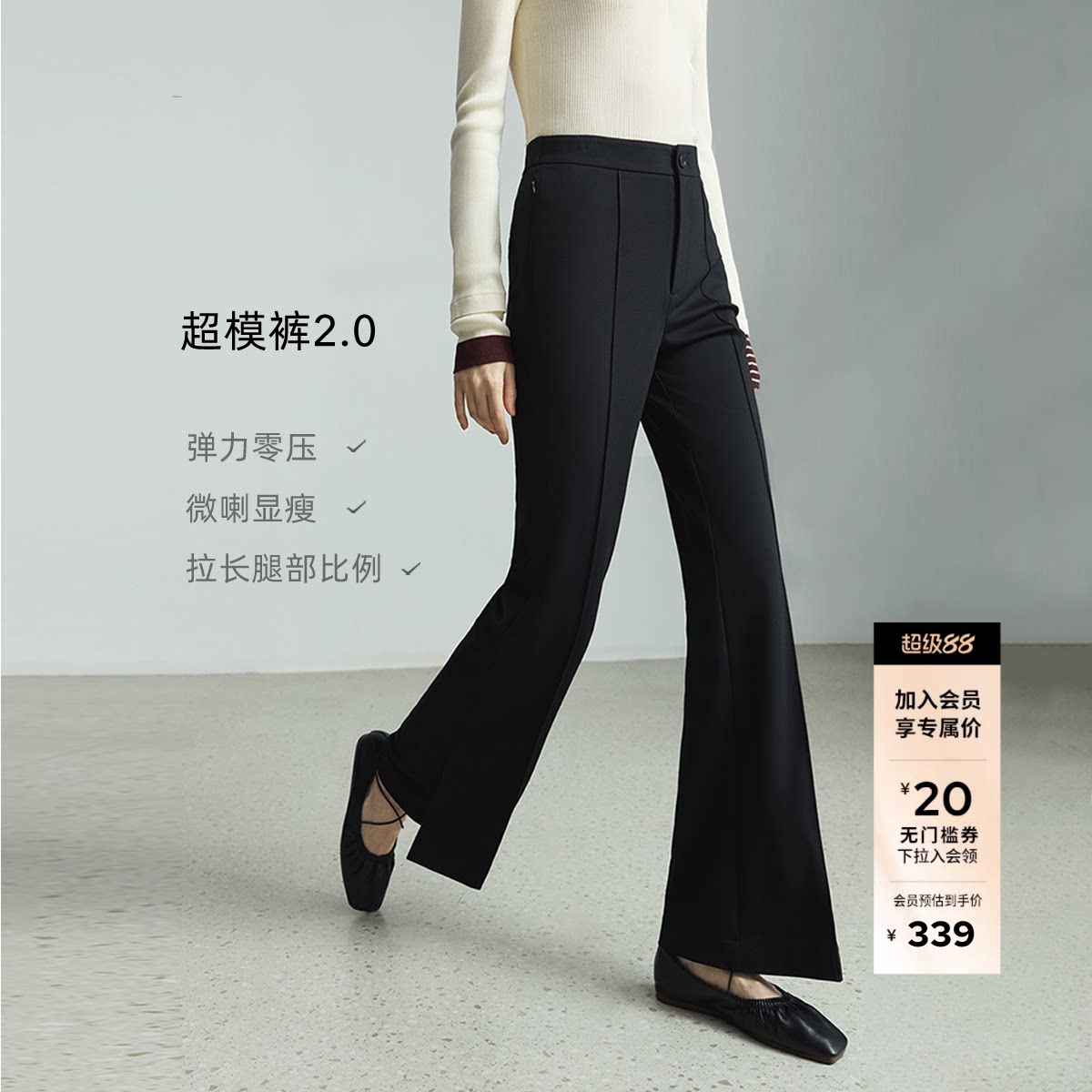 --------------------- 超模小黑裤LILY2026新款女装弹力修身微喇裤高腰黑色休闲长裤 【原售价】599元 【现售价】336元 【推荐理由】