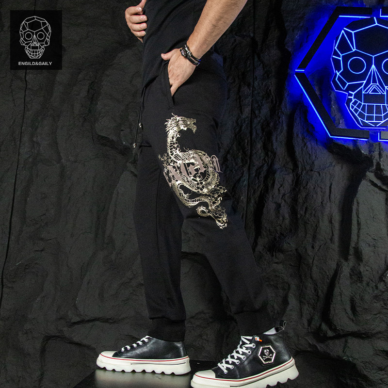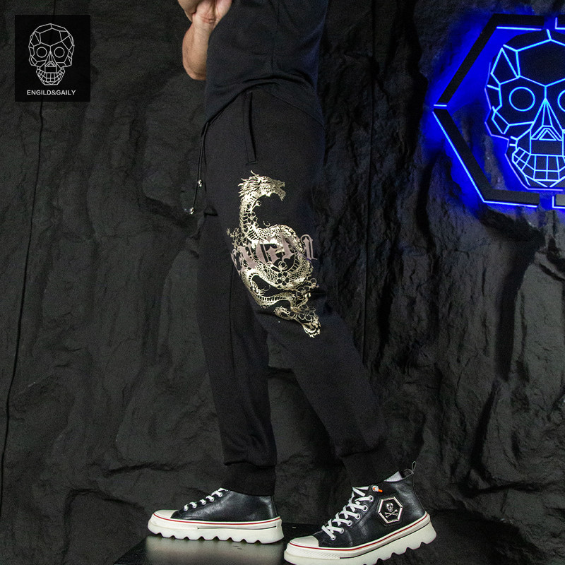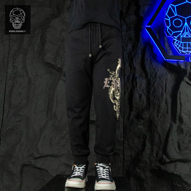 --------------------- 金刚铁甲骷髅头潮牌暗黑系烫金印花休闲束脚运动长裤男宽松美式 【原售价】299元 【现售价】263元 【推荐理由】