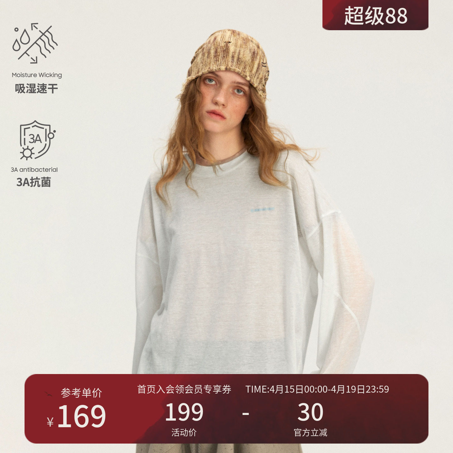 --------------------- 瞬时山野Monterest户外原纱3A抗菌吸湿速干涤麻长袖宽松运动T恤女 【原售价】199元 【现售价】169元 【推荐理由】