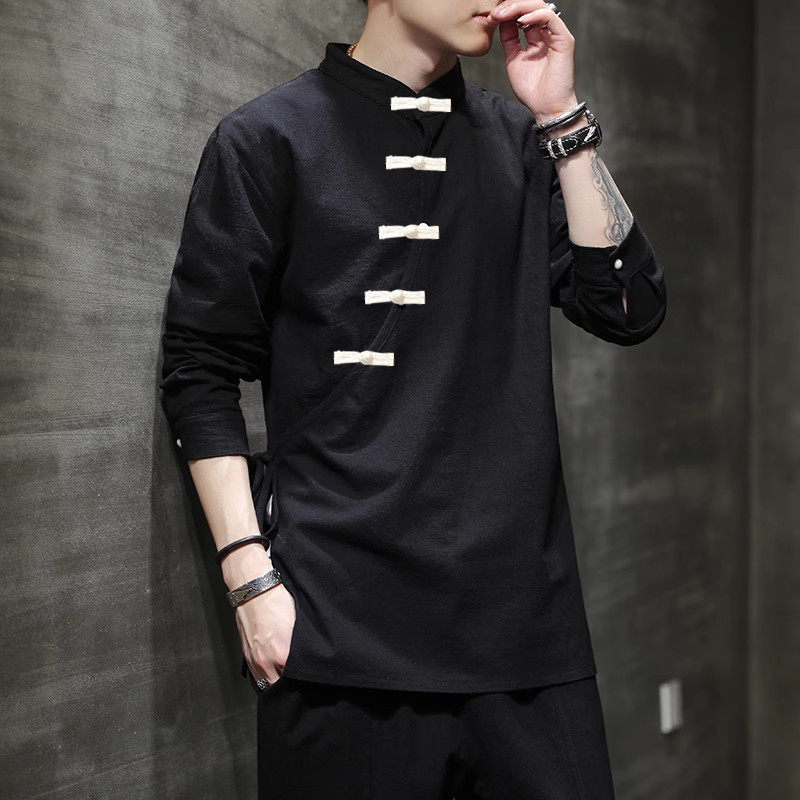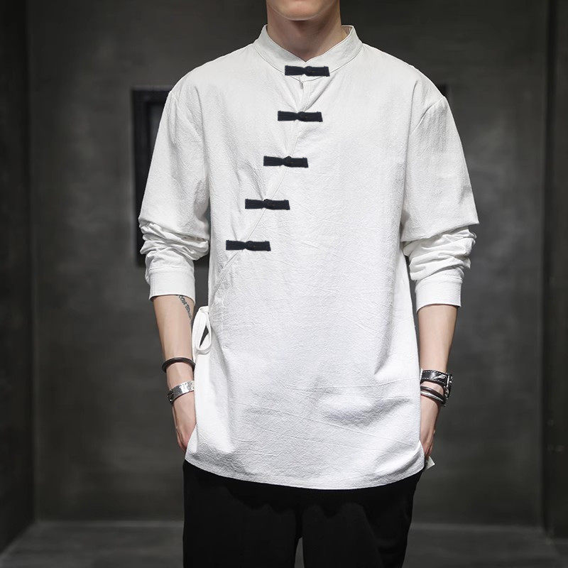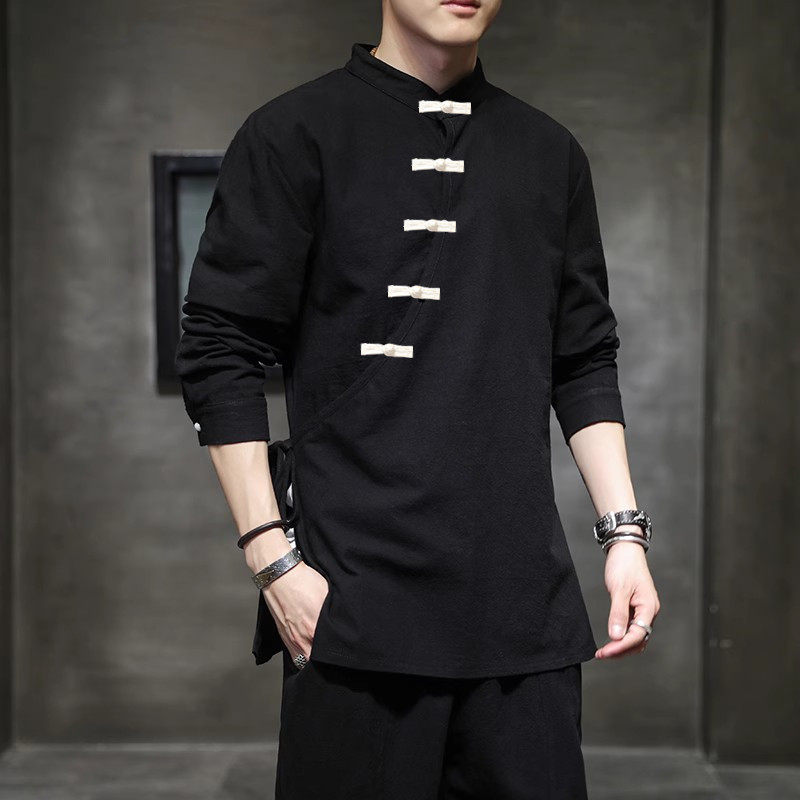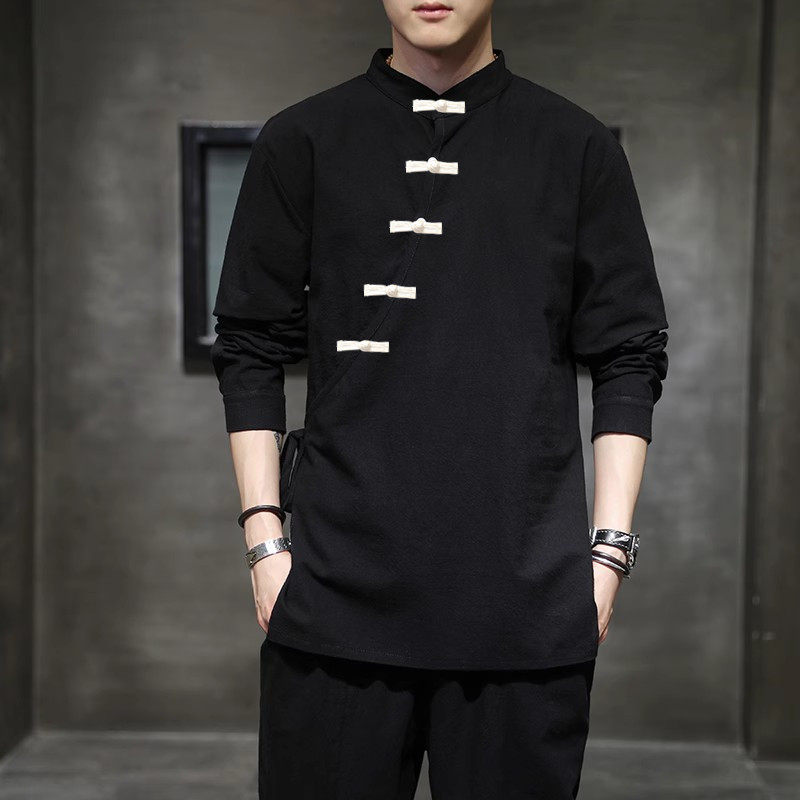 --------------------- 春秋季男式棉麻斜领盘扣衬衫加大码复古衬衣中式汉服上衣禅修服潮 【原售价】128元 【现售价】108元 【推荐理由】
