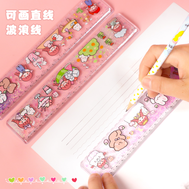 --------------------- 可爱入油流沙尺子格尺小学生专用透明直尺卡通20cm波浪儿童少女心 【原售价】7.3元 【现售价】5.8元 【推荐理由】