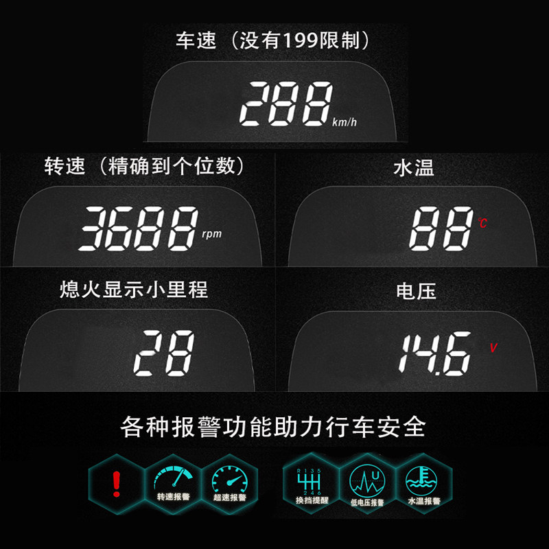 淘宝车载HUD抬头显示器汽车通用OBD数字车速度水温智能高清悬浮投影仪