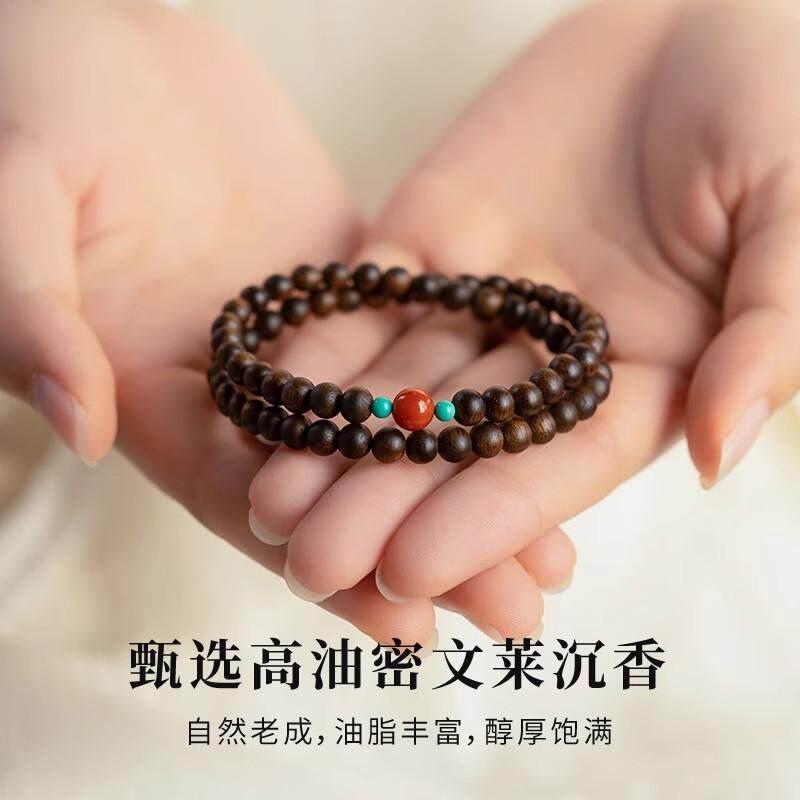 文莱沉香手串赵丽颖同款沉水级收藏级老料双圈叠戴女手链文玩佛珠