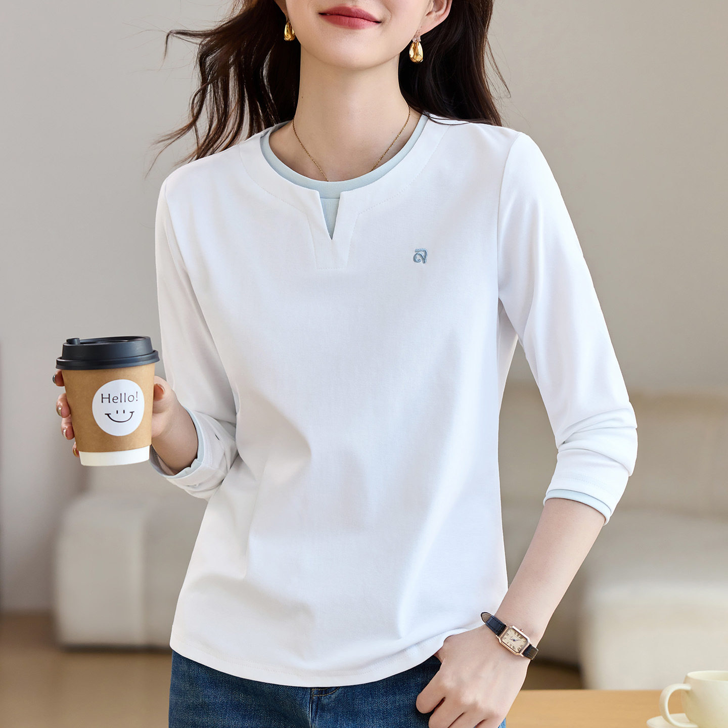 长袖t恤女士打底衫春秋内搭可外穿2025新款洋气爆款修身正肩上衣