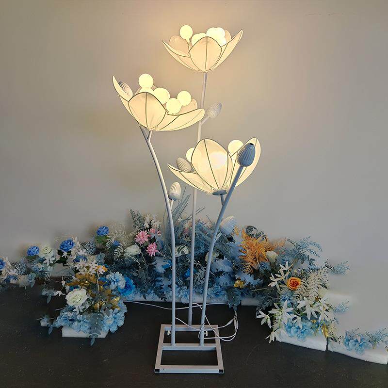 新弹款3舞头茶花路引动台摆件力AJN布暖灯白灯婚庆主体活装饰品