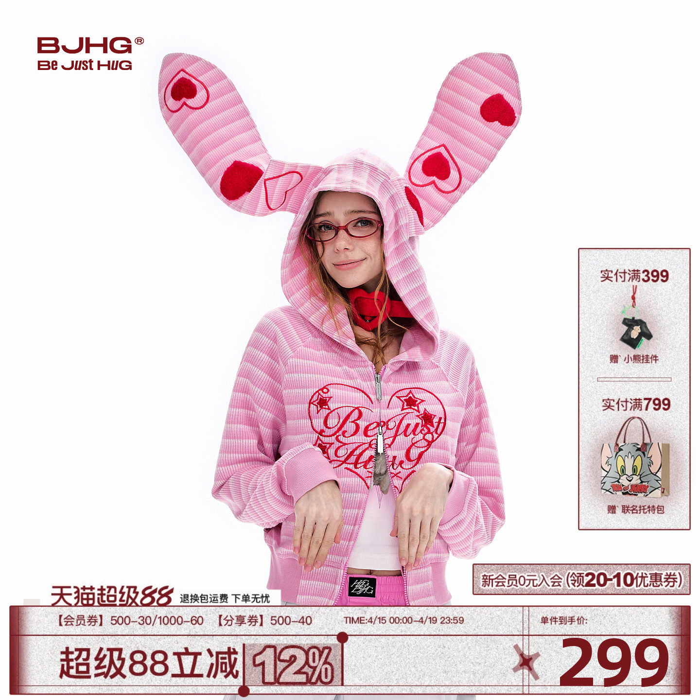 【不宠系列】BJHG不计后果兔耳朵开衫卫衣女春季刺绣宽松百搭外套