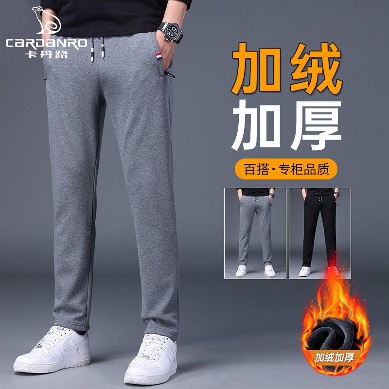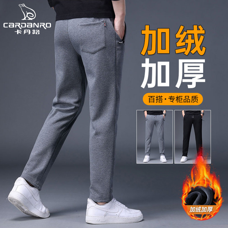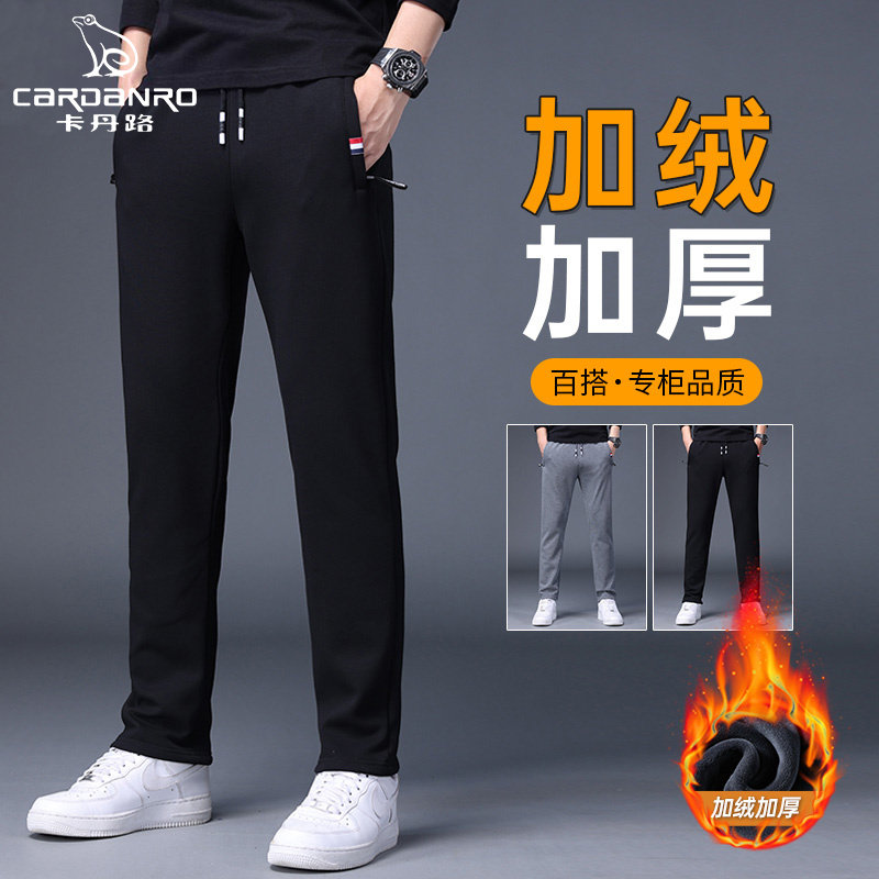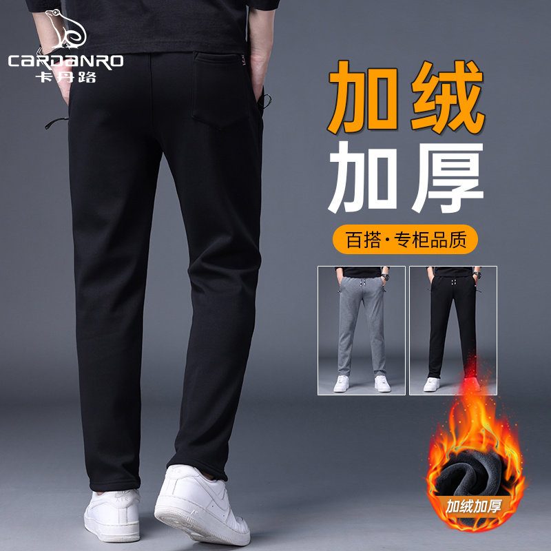 淘宝卡丹路卫裤男冬季加绒加厚长裤子宽松直筒男士加肥加大码休闲男裤