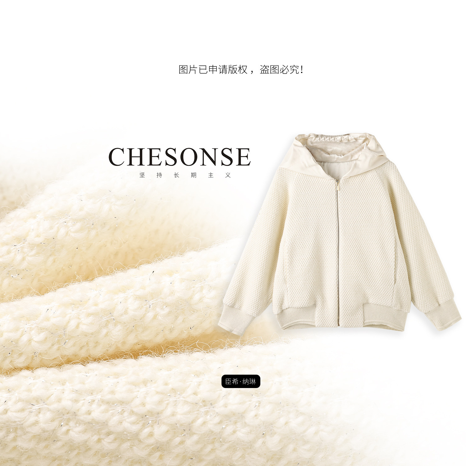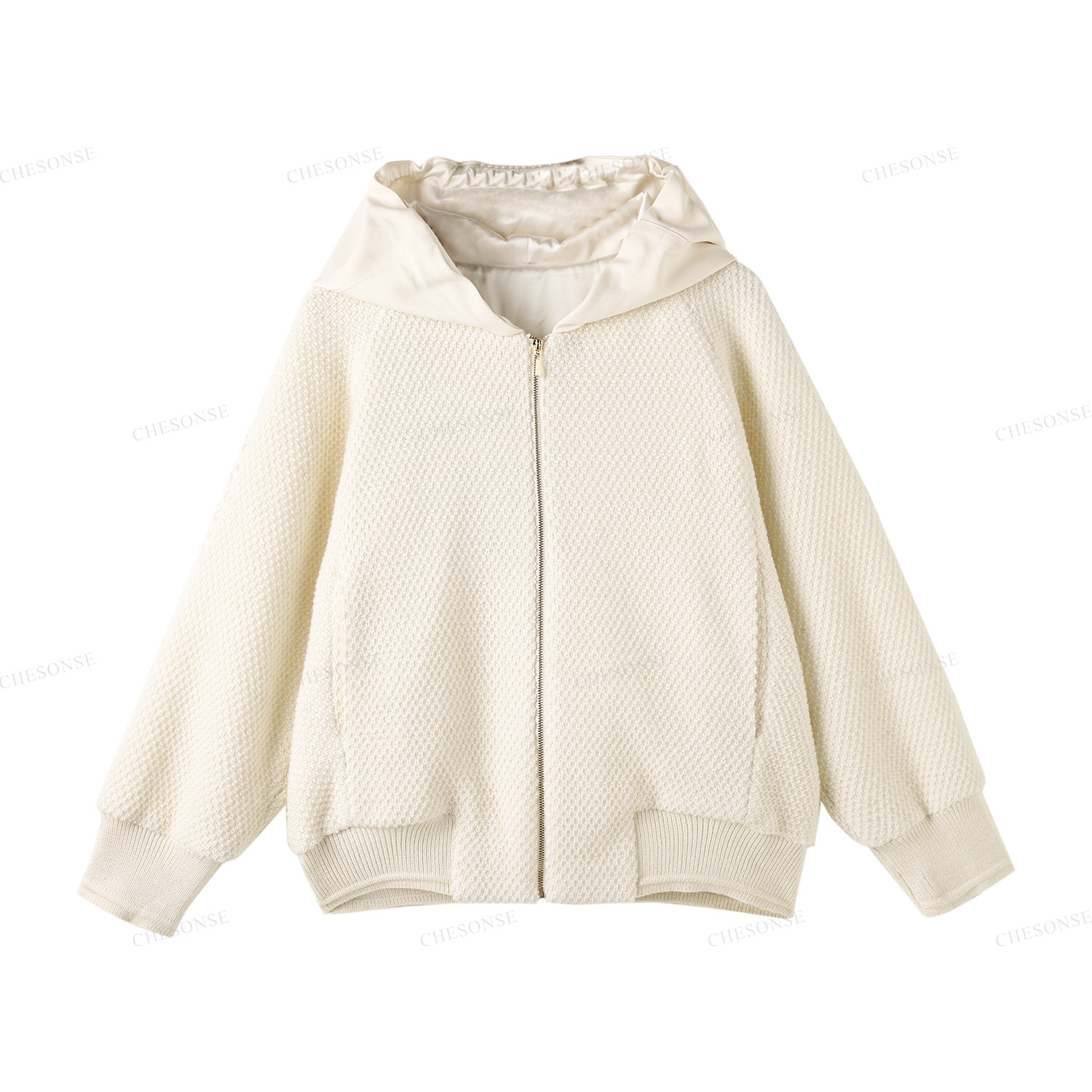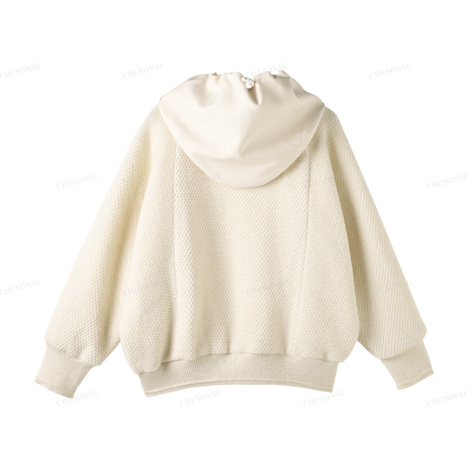 CHESONSE【命运罗盘】雅家 休闲纯色连帽灯笼袖羊毛短外套女6064