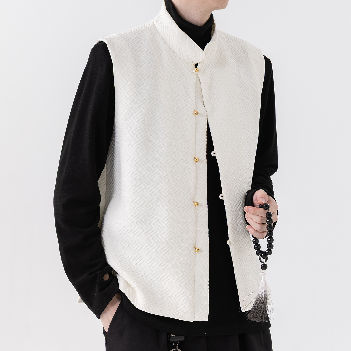 --------------------- 男士新中式纹理感外穿马甲男款无袖秋季背心国潮褂子外套2026新款 【原售价】295元 【现售价】172元 【推荐理由】