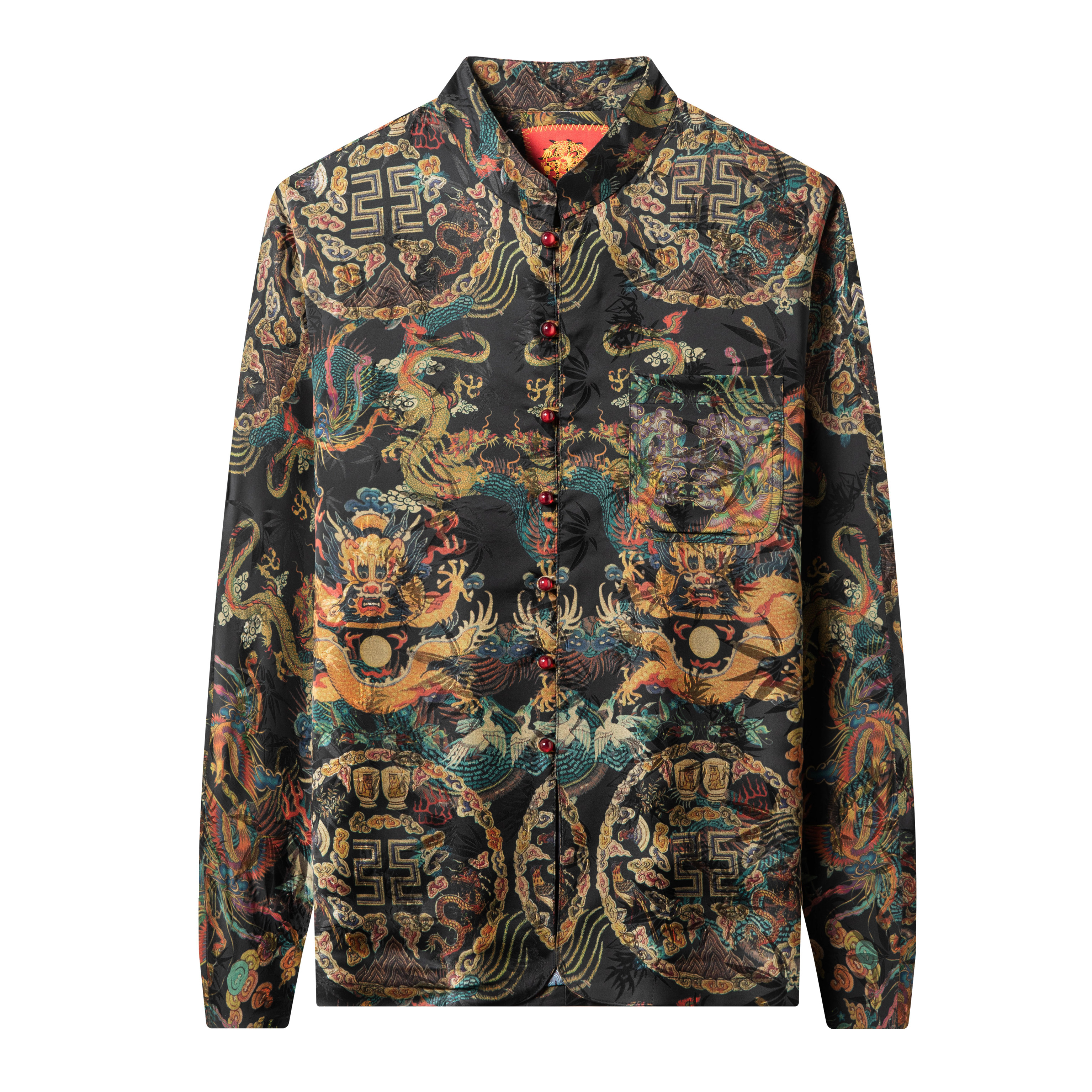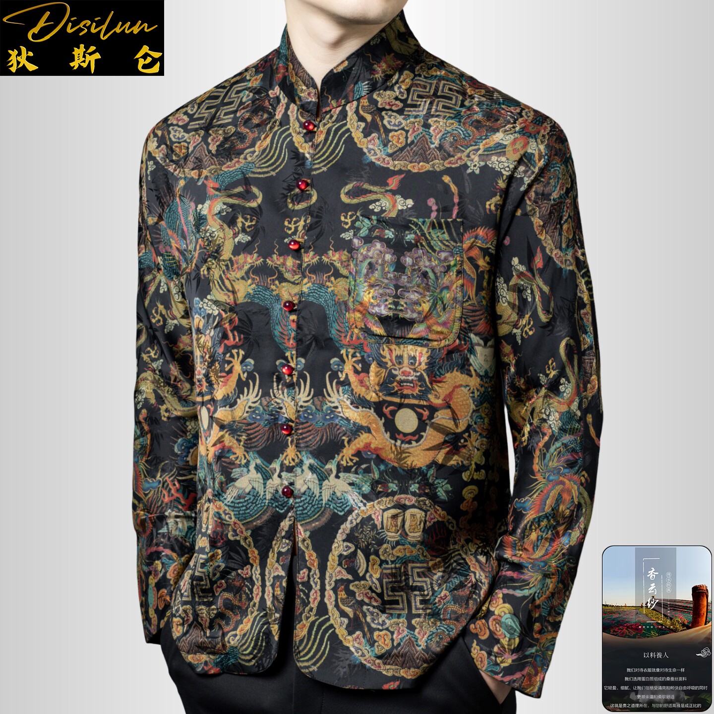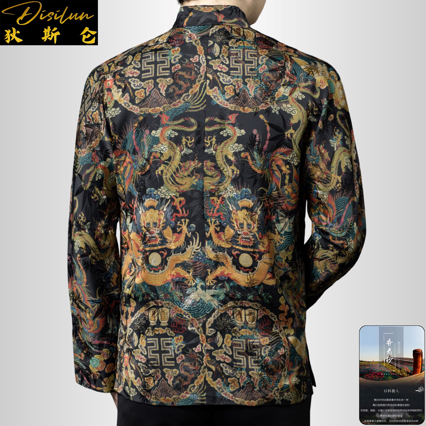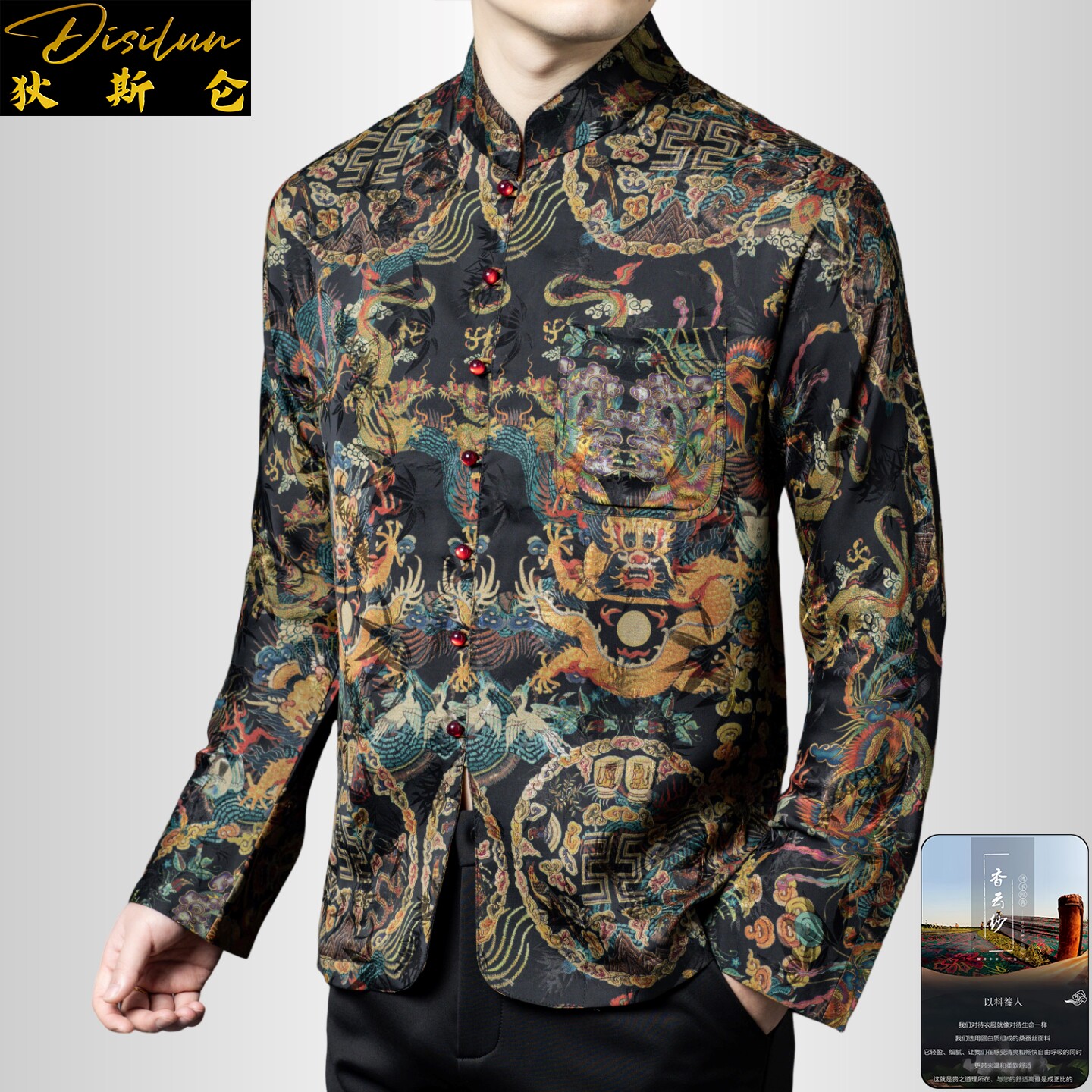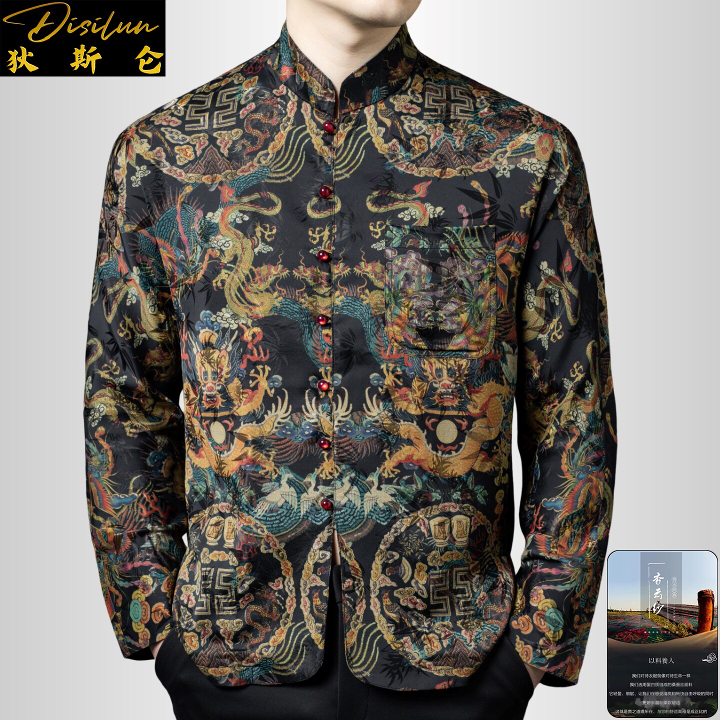 淘宝狄斯仑中国风香云纱立领长袖唐装男士春秋桑蚕丝新中式复古风上衣
