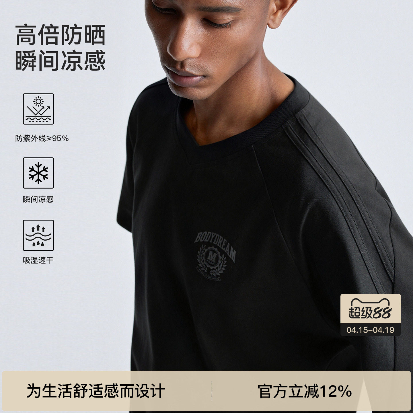 --------------------- BODYDREAM夏季凉感速干短袖男款复古印花上衣宽松落肩V领运动T恤 【原售价】179元 【现售价】157元 【推荐理由】