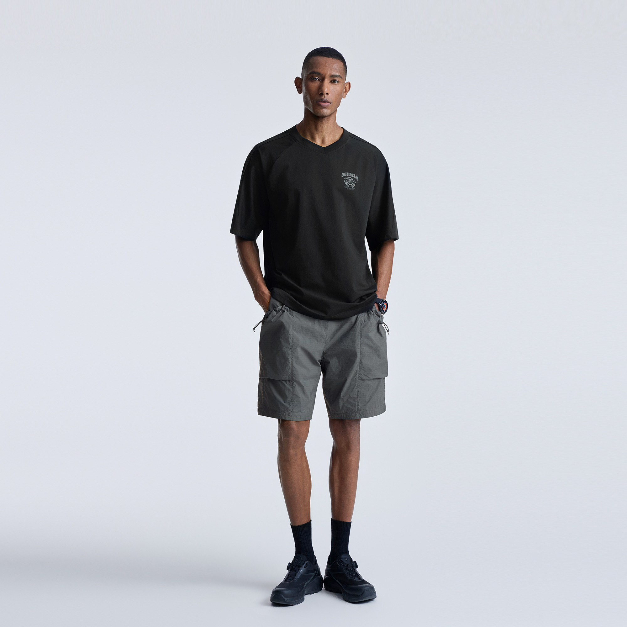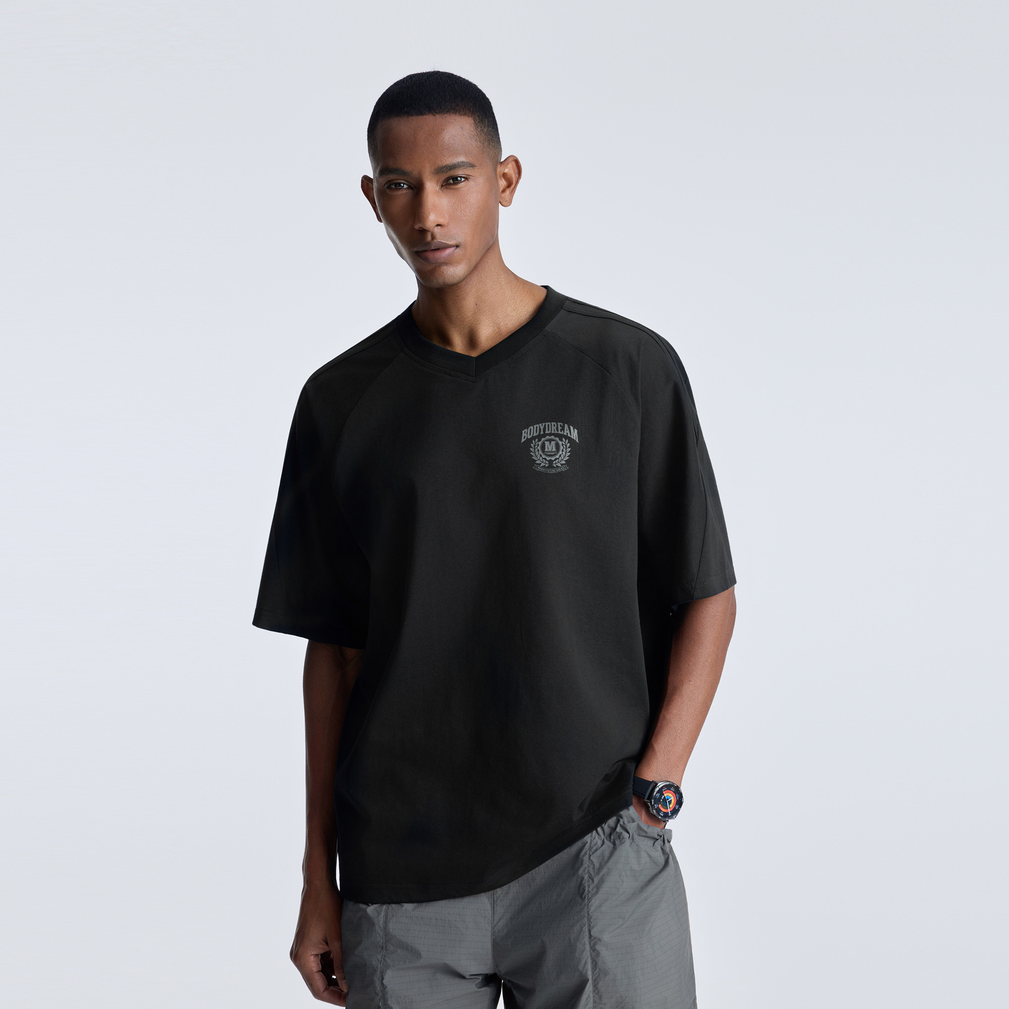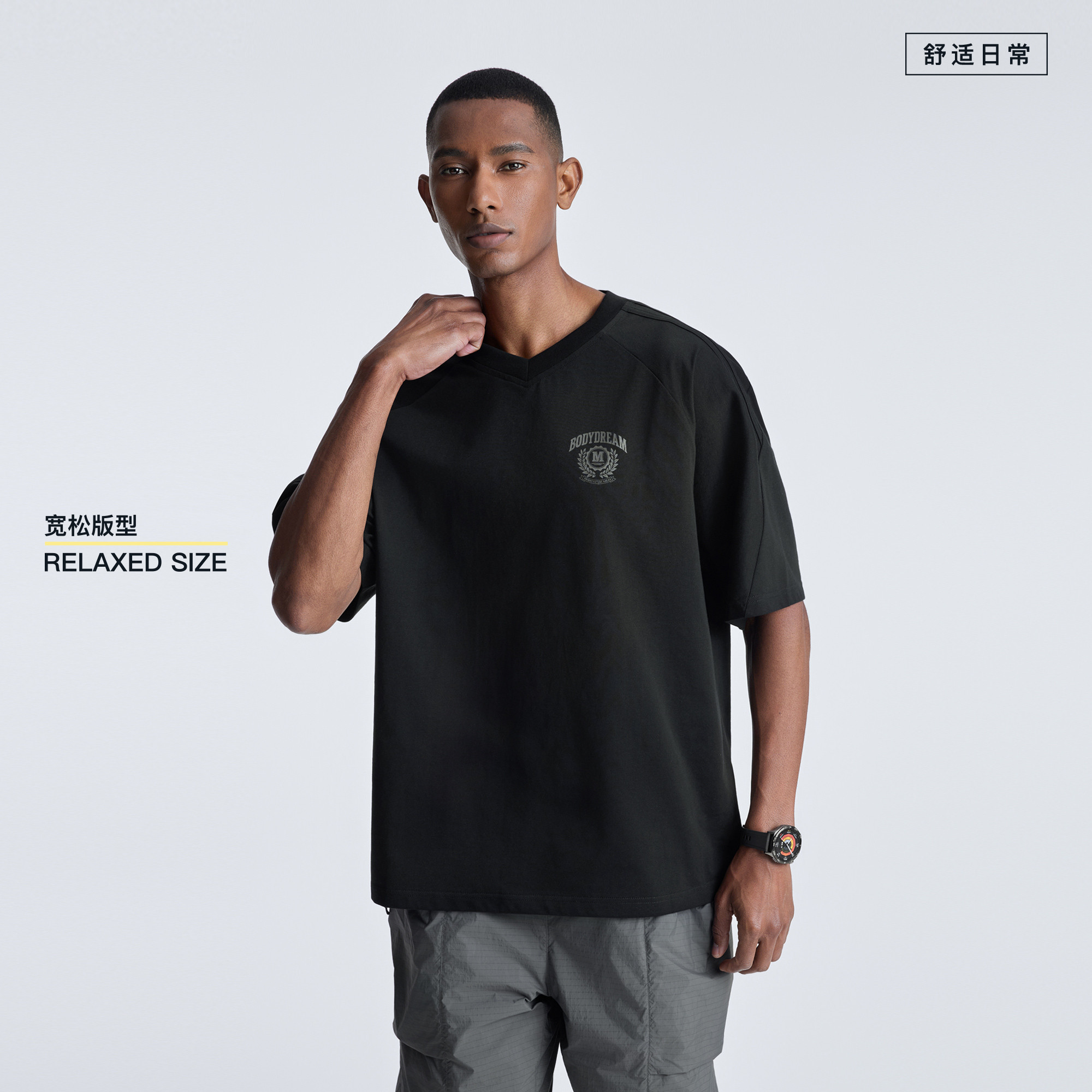 BODYDREAM夏季凉感速干短袖男款复古印花上衣宽松落肩V领运动T恤