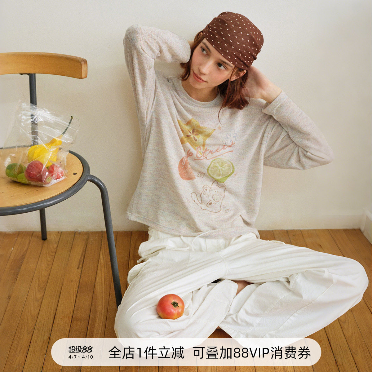 淘宝714street莱赛尔凉感印花T恤女款 2026春季新款宽松彩纱长袖罩衫
