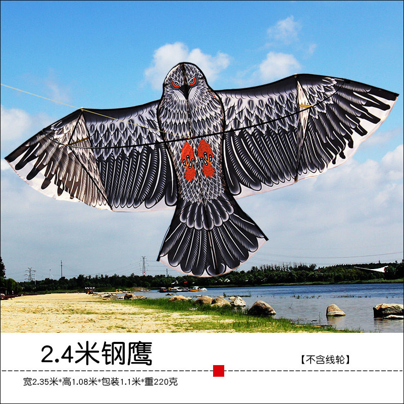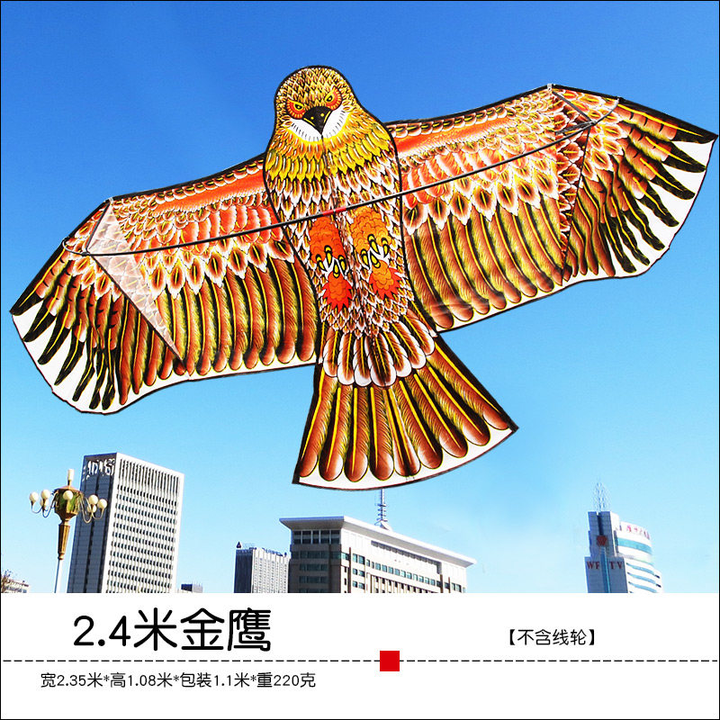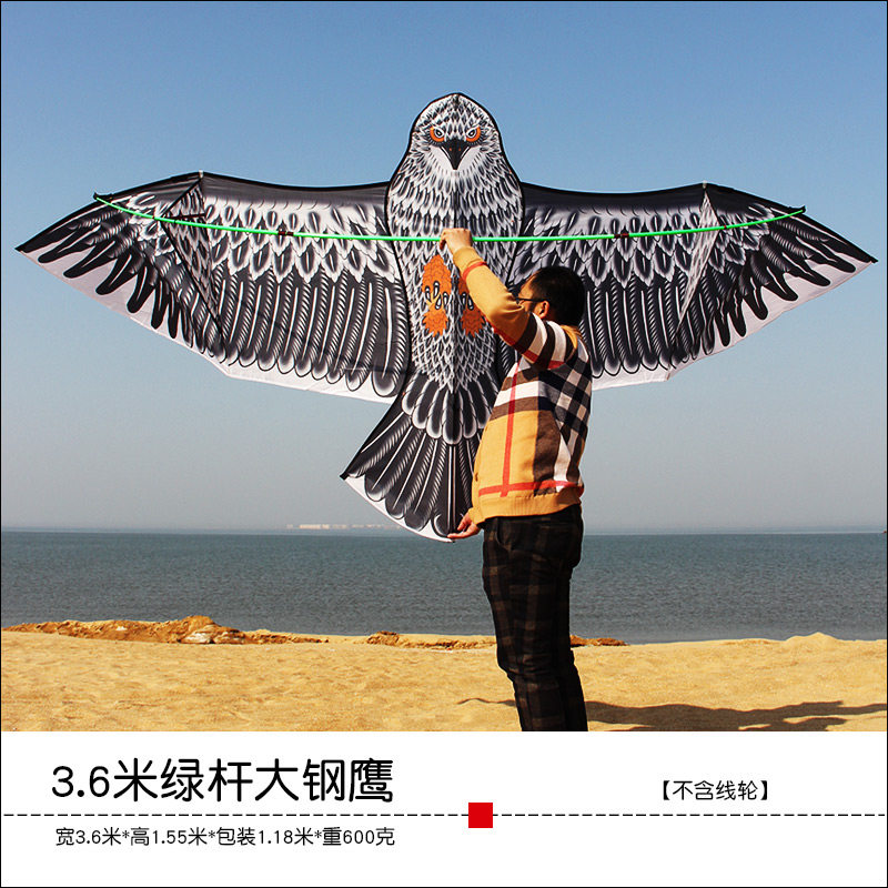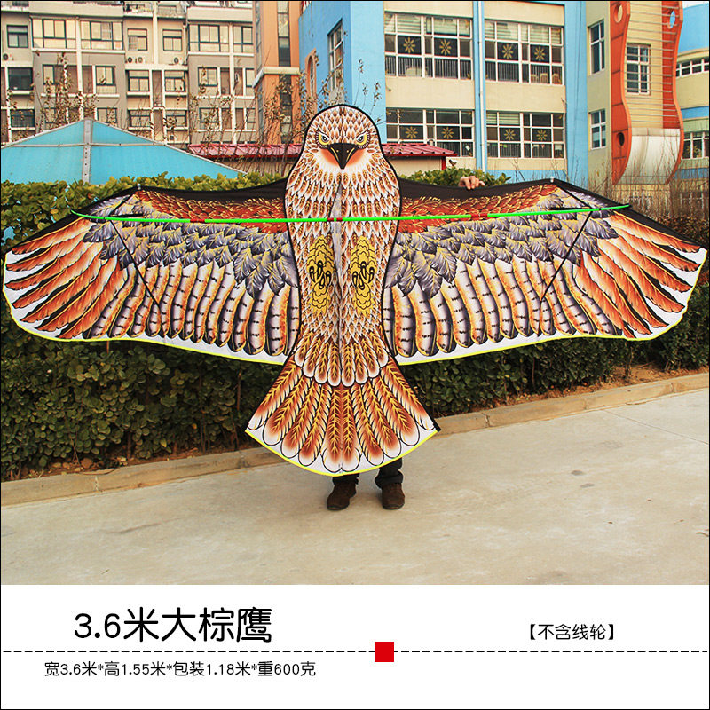淘宝新品潍坊2.4米3.6米大钢鹰金鹰棕鹰黑鹰大型成人风筝线轮微风