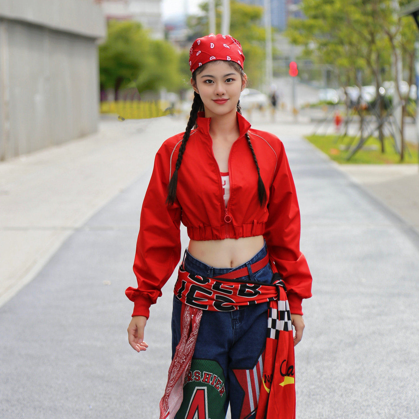 --------------------- 宽松露脐工装夹克短款外套女街舞潮爵士风格上衣嘻哈jazz跳舞服装 【原售价】85元 【现售价】74.8元 【推荐理由】