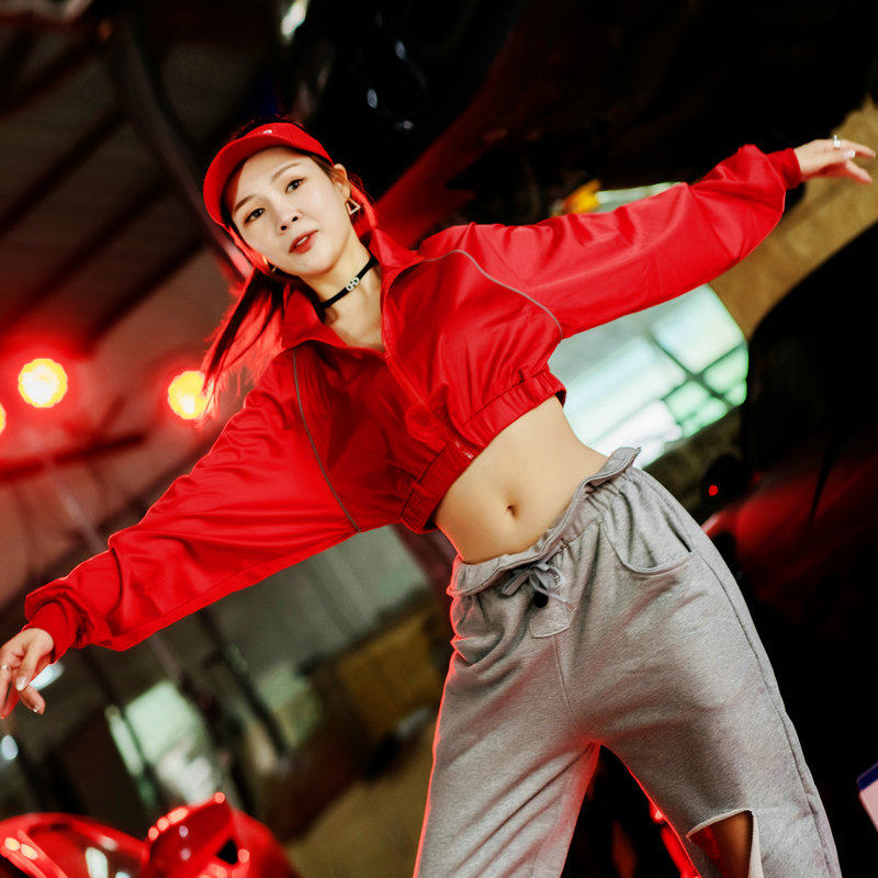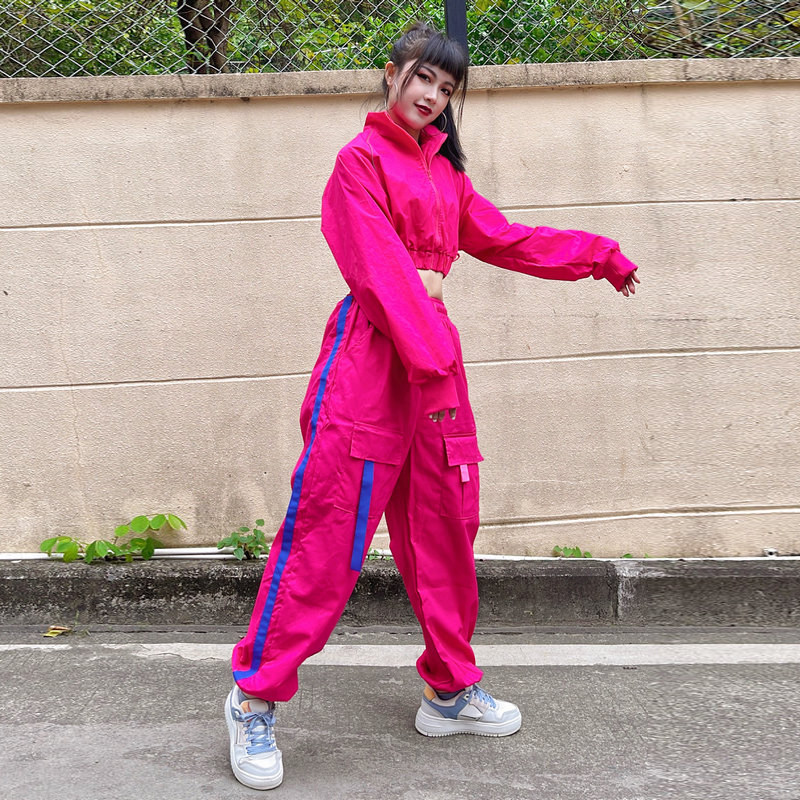 宽松露脐工装夹克短款外套女街舞潮爵士风格上衣嘻哈jazz跳舞服装