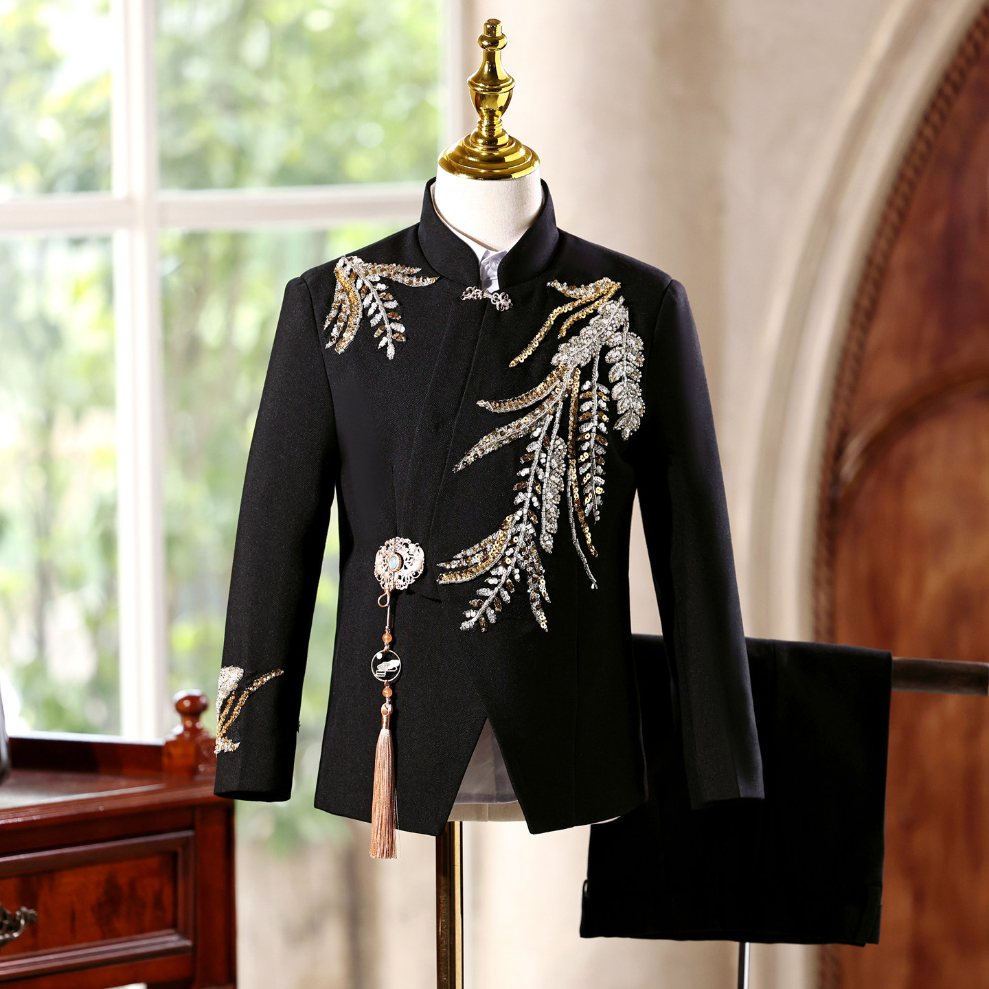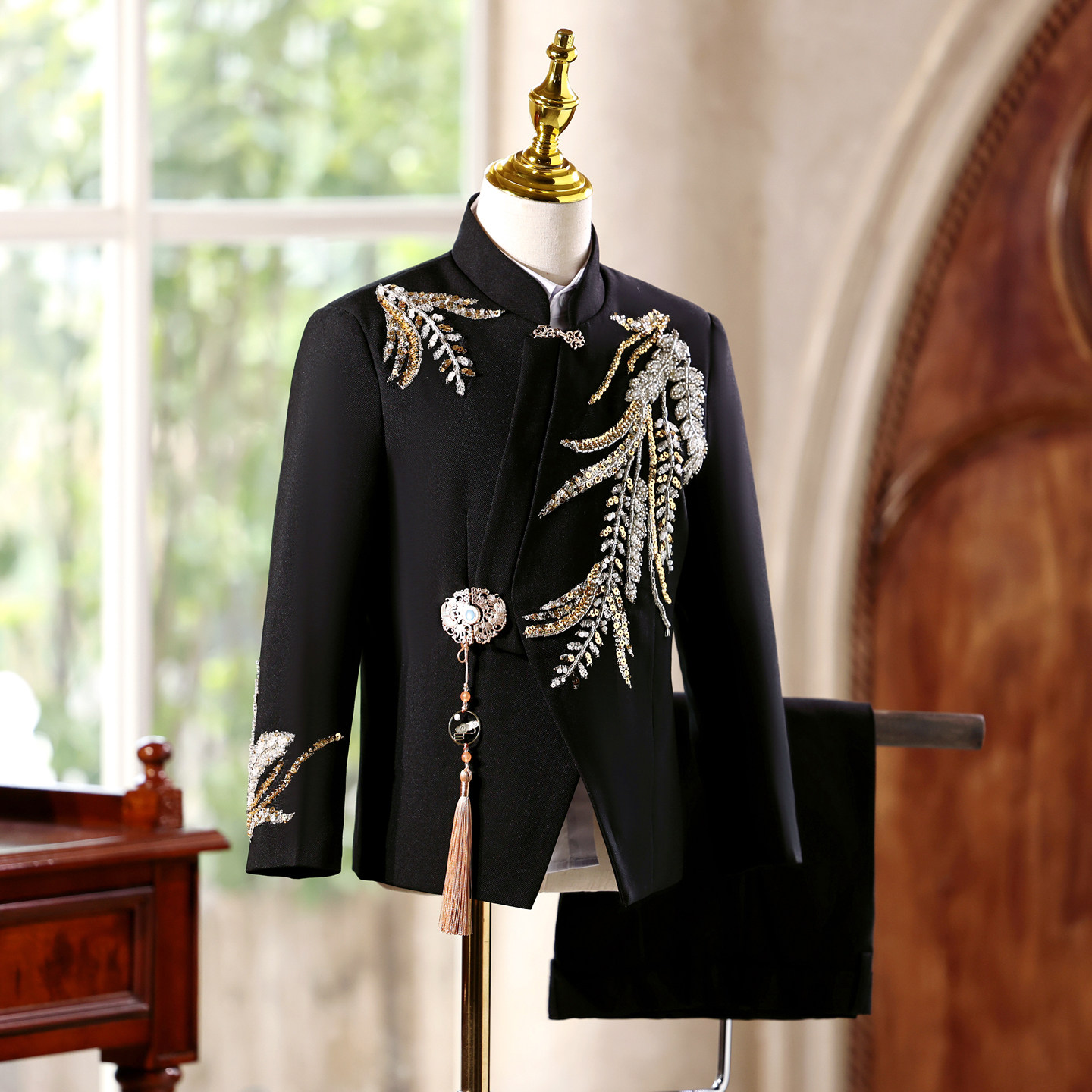 --------------------- 男童中式西装高端走秀朗诵主持人礼服中国风大童男孩演出服中山装 --------------------- --------------------- 【原价】599元 【券后价】389元