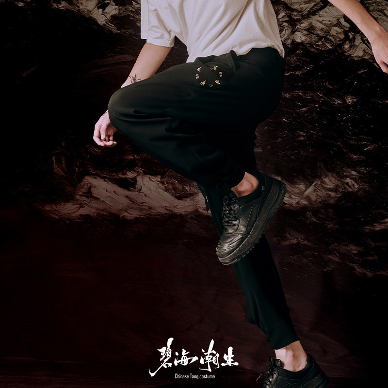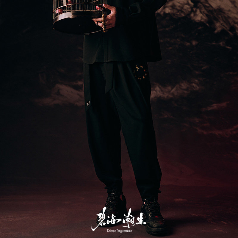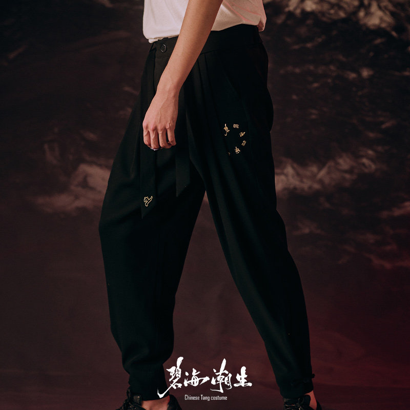--------------------- 碧海潮生<极道>春夏新款原创中国风国潮黑丝绸刺绣宽松休闲长裤 【原售价】1198元 【现售价】632元 【推荐理由】
