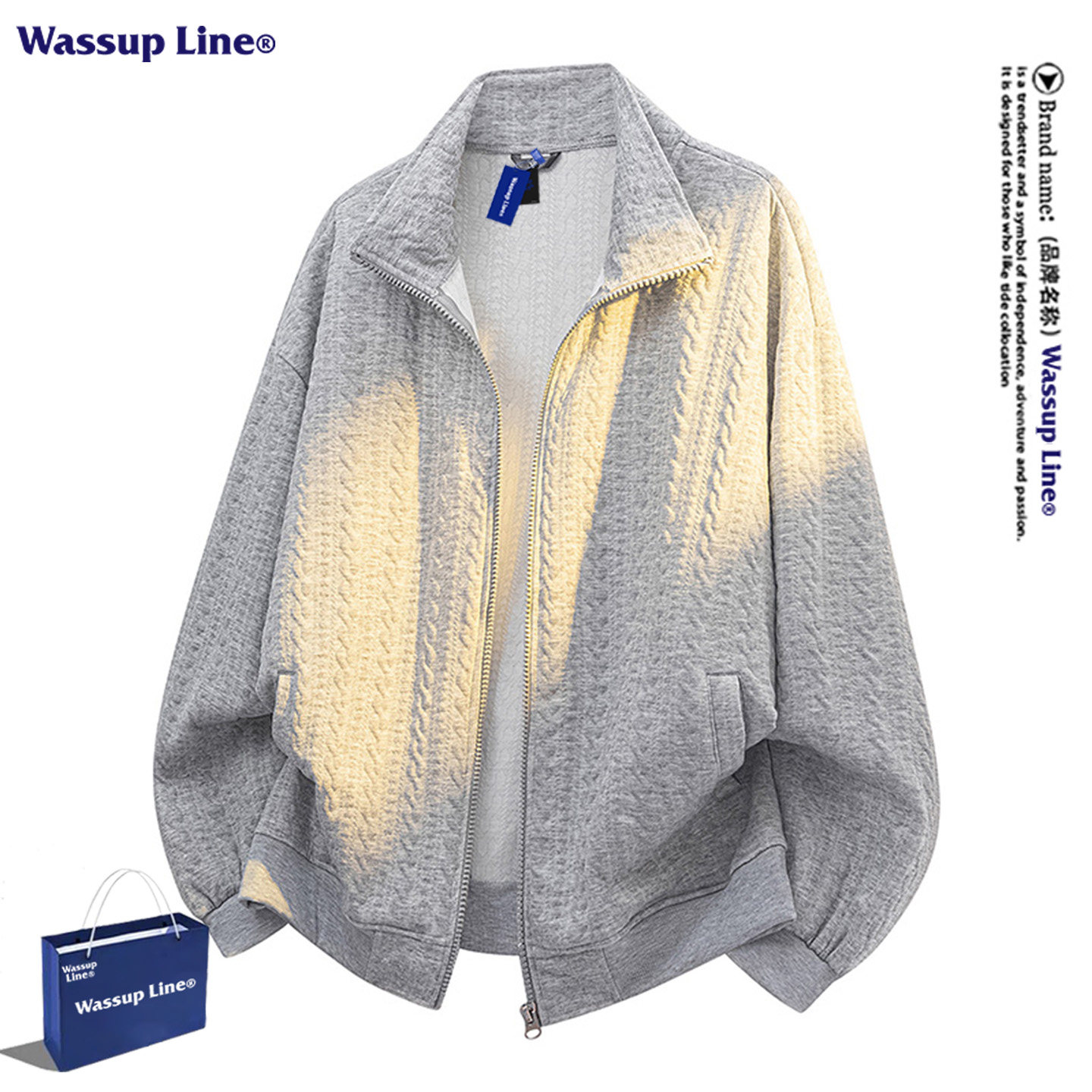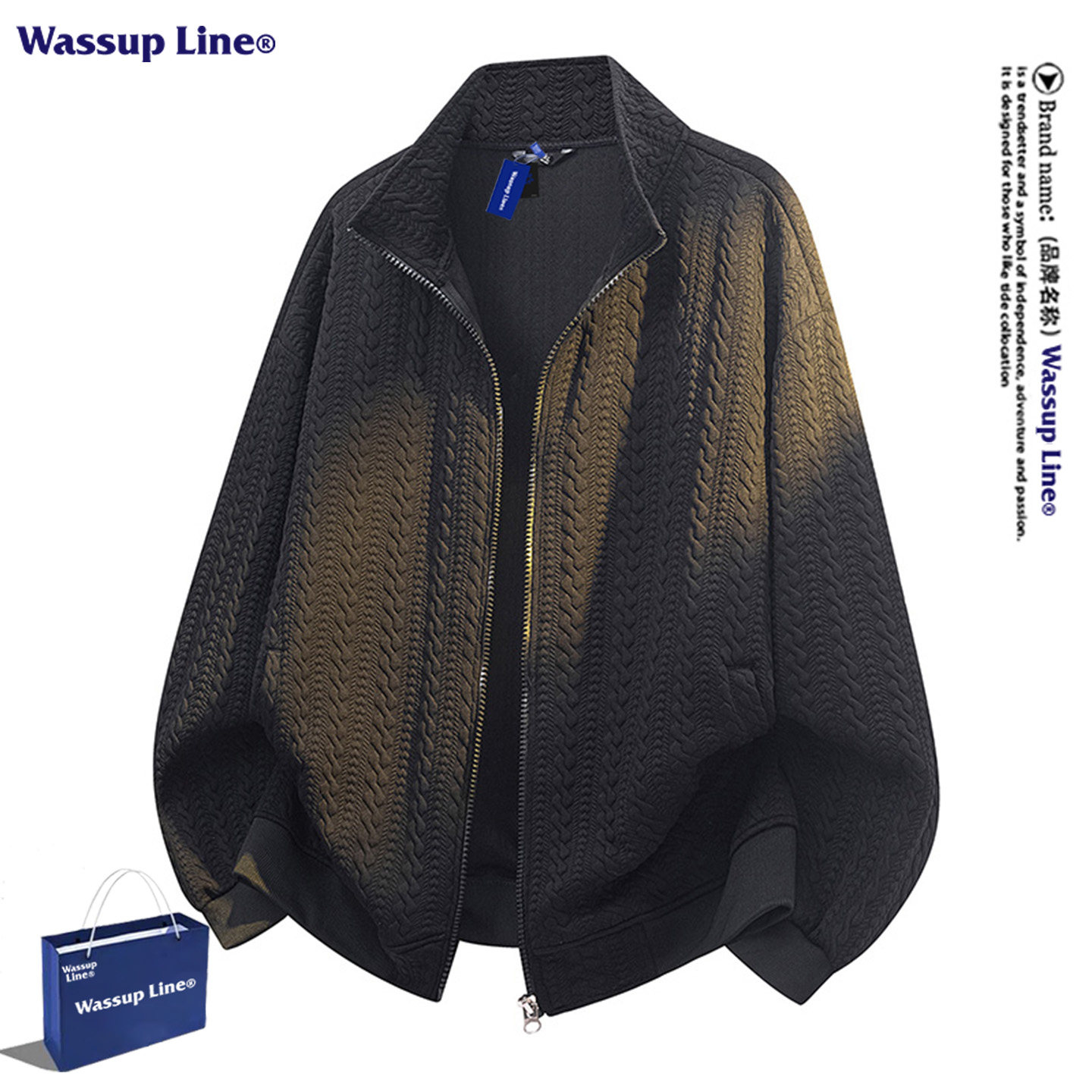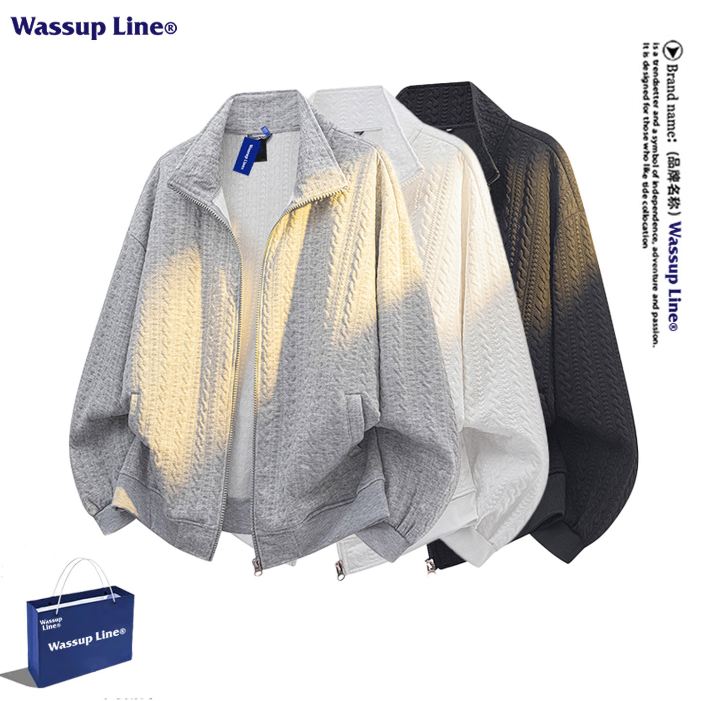 WASSUP Line潮牌美式开衫针织外套男款春秋宽松百搭提花慵懒卫衣