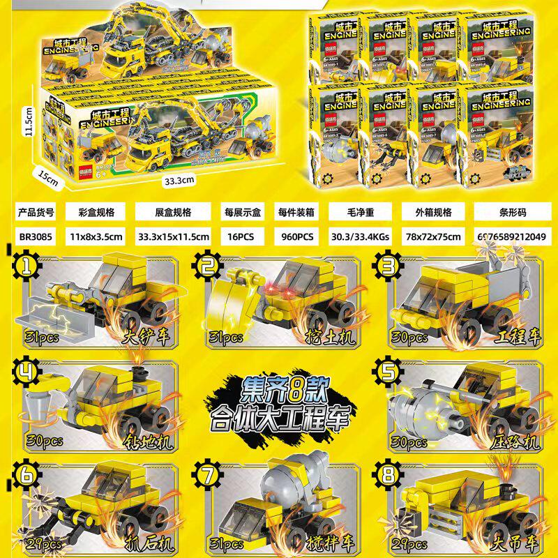 --------------------- 佰盛高BR3085八合一多功能工程车挖掘机压路机积木拼装玩具男孩礼 --------------------- --------------------- 【原价】18元 【券后价】12元