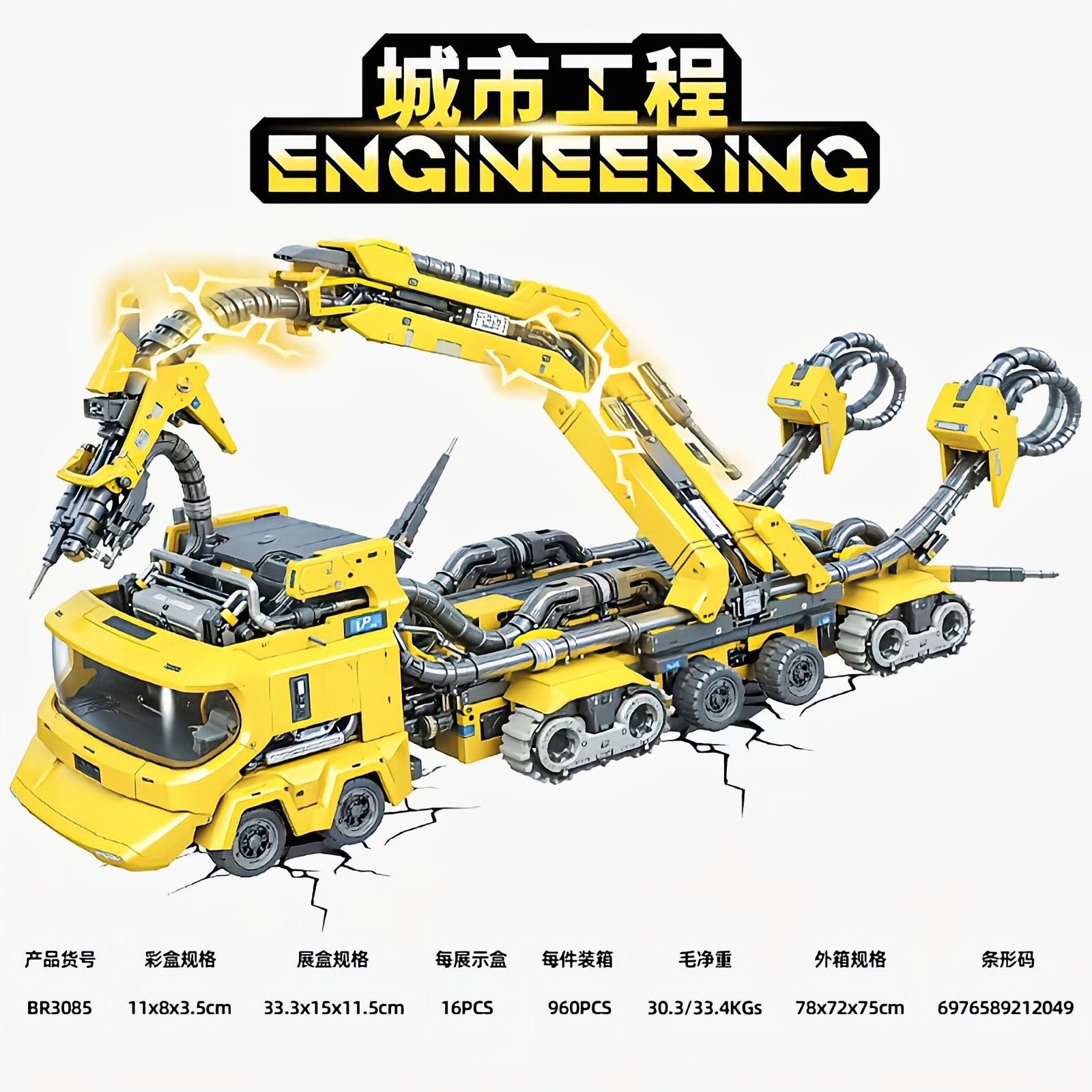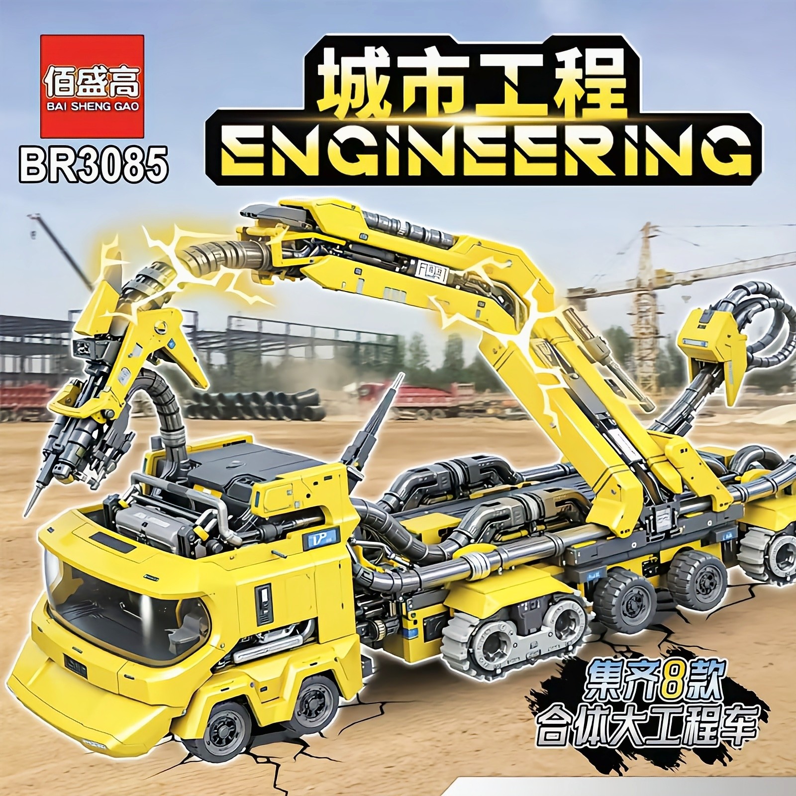 佰盛高BR3085八合一多功能工程车挖掘机压路机积木拼装玩具男孩礼