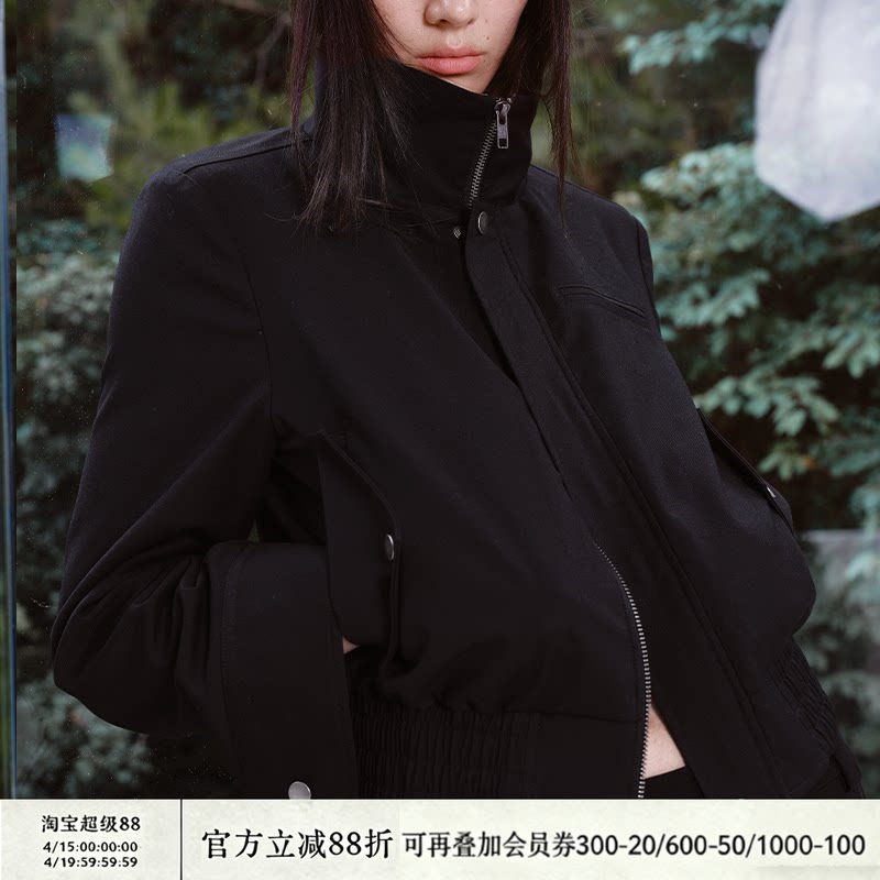 淘宝JCAESAR WOMEN 格纹拼接黑夹克 短窄版 多穿着形式 铆钉装饰