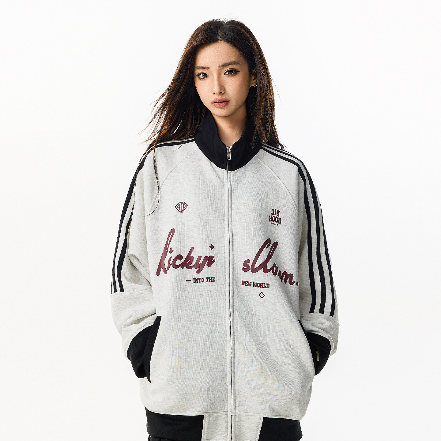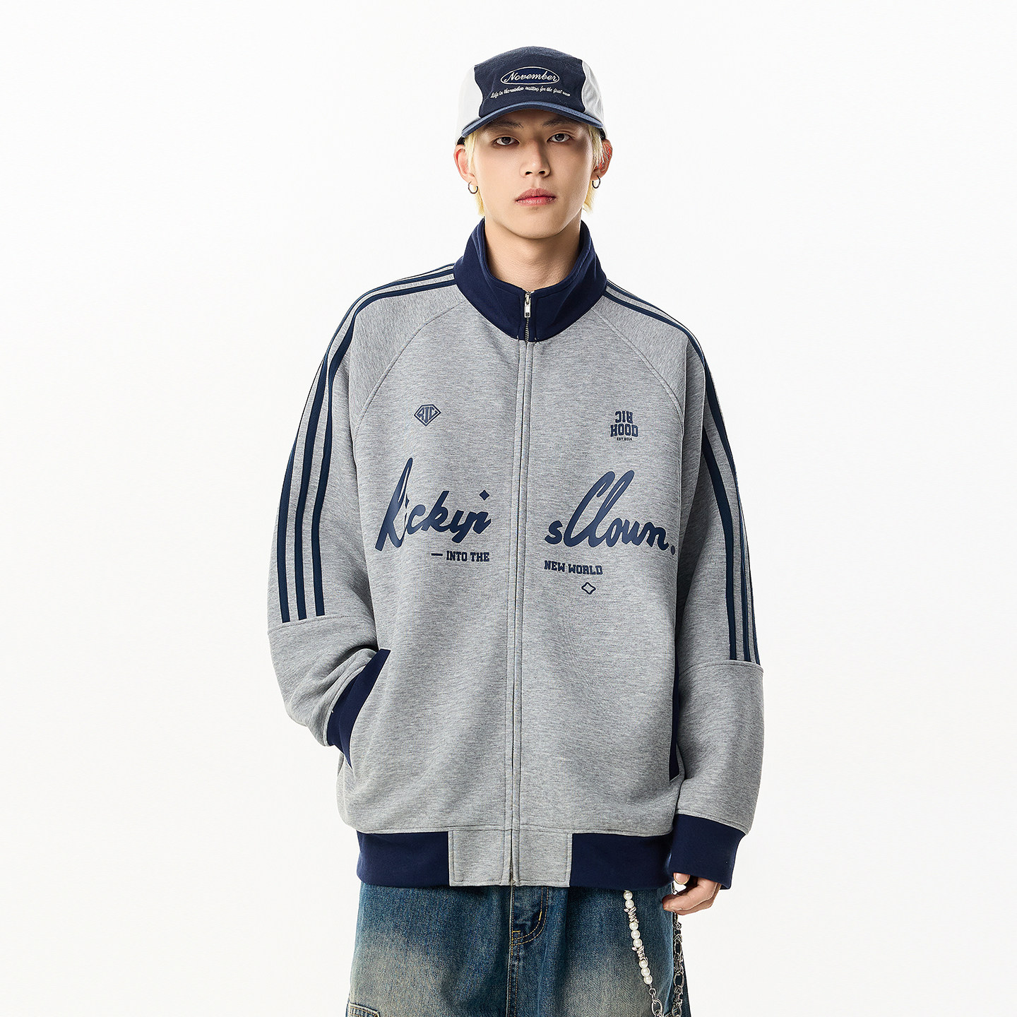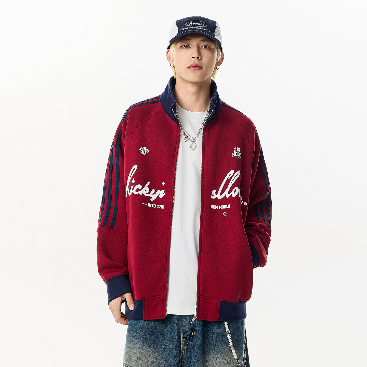 RIC 空气层撞色运动立领夹克男秋季新款宽松美式潮牌情侣装外套女