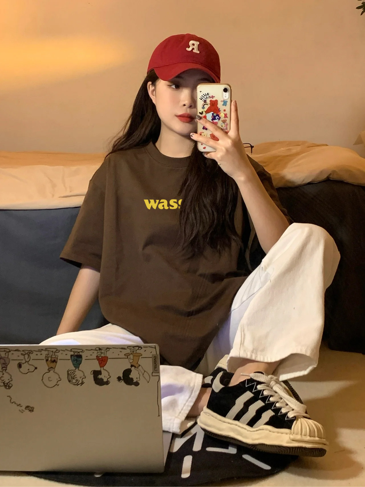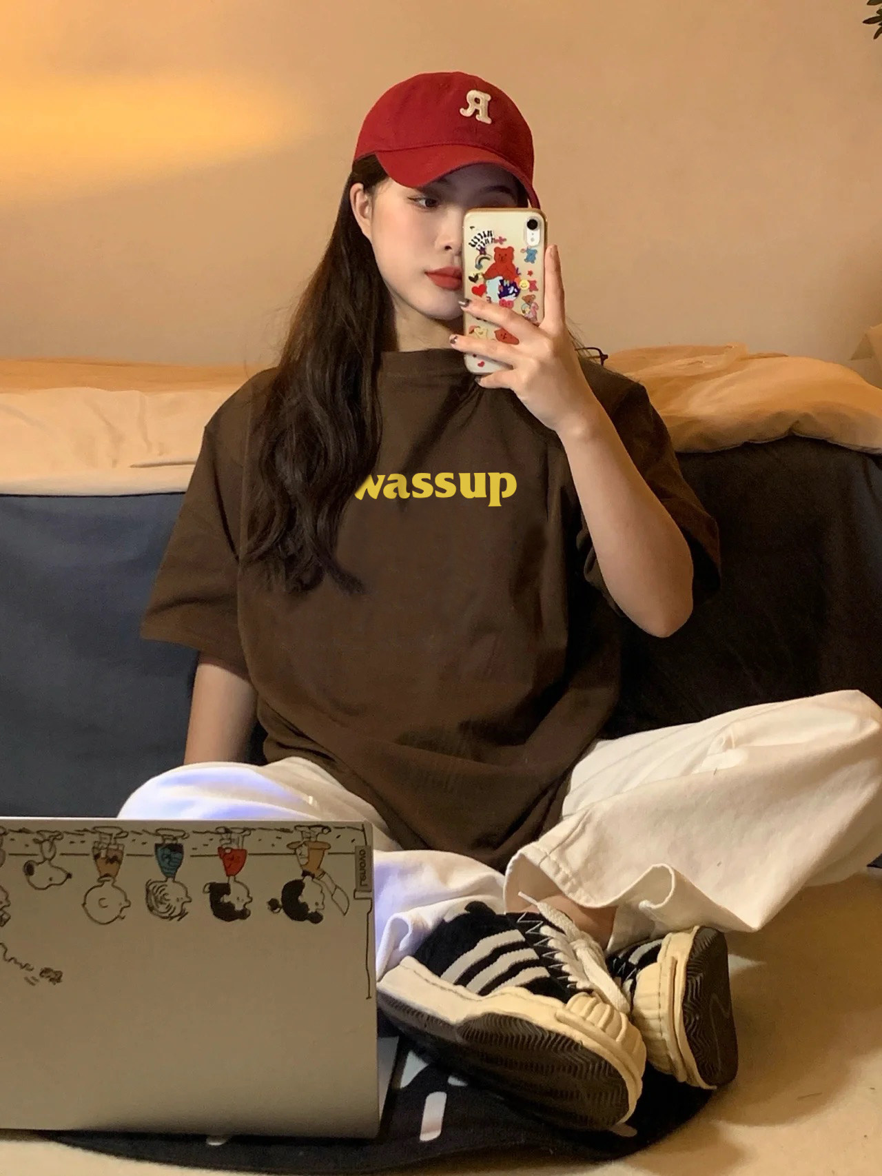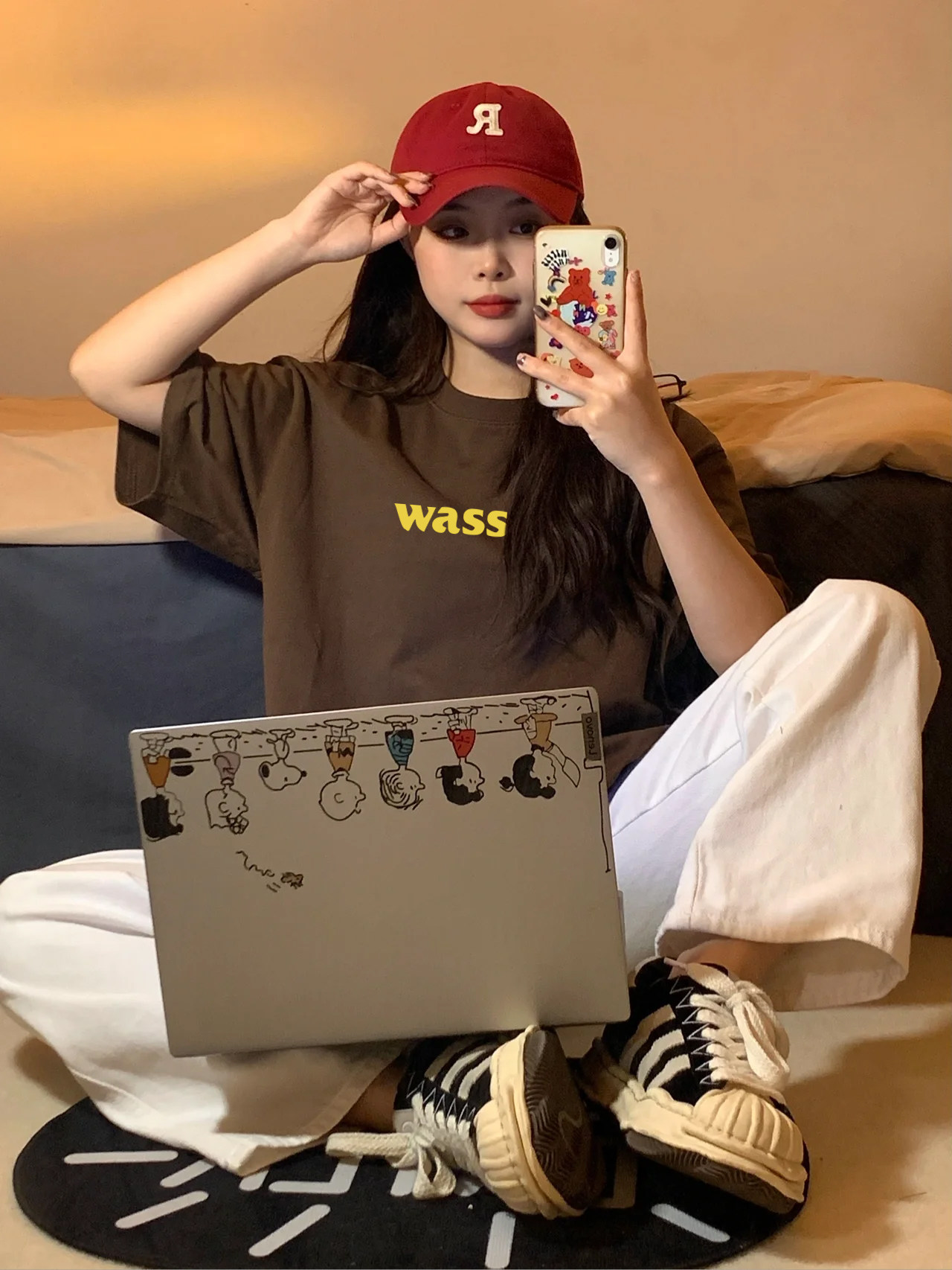 --------------------- WASSUP国潮情侣短袖T恤女夏季2026新款爆款咖色宽松重磅纯棉潮牌 【原售价】99元 【现售价】56.8元 【推荐理由】