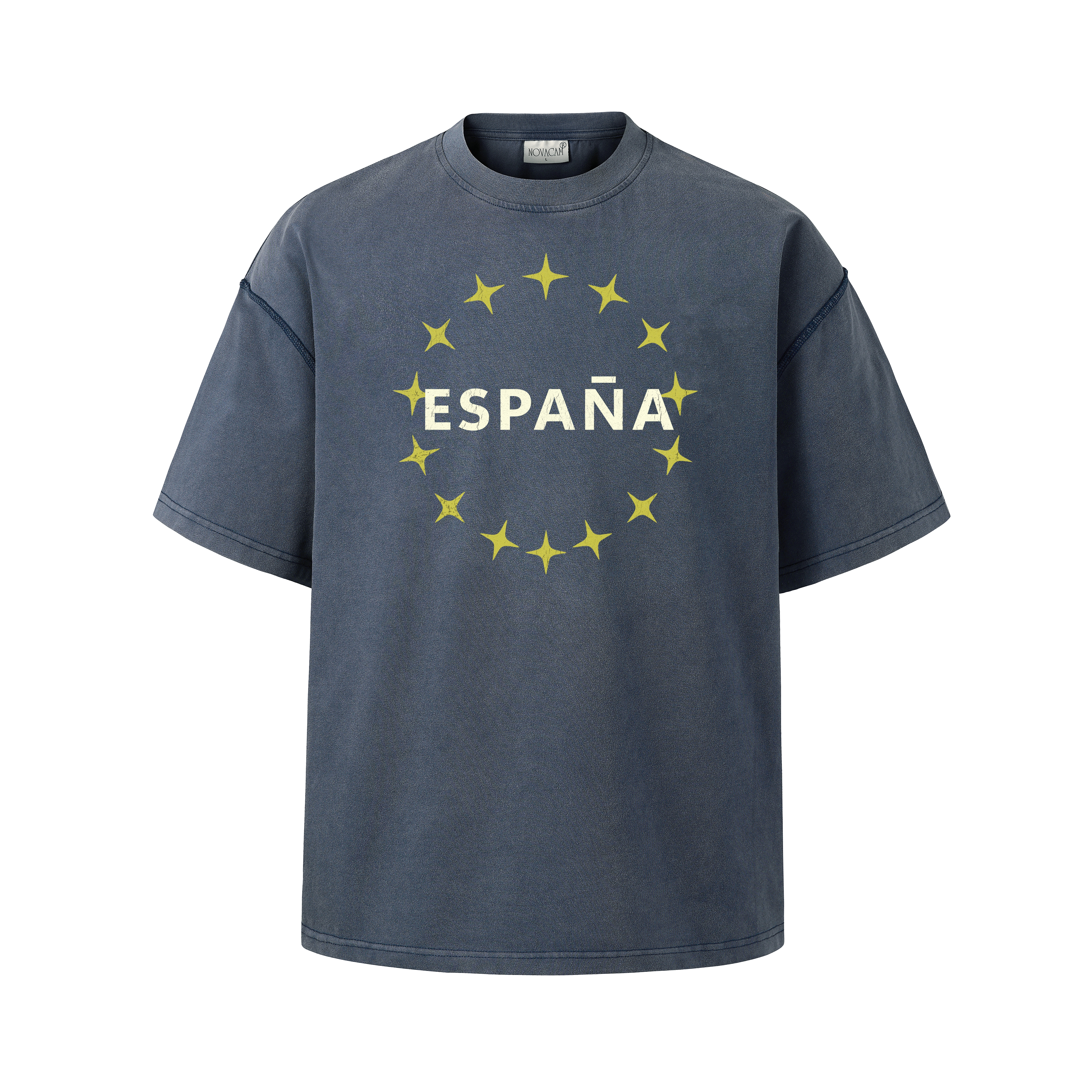NOVACAM 高街cleanfit字母LOGO美式水洗创意星星印花宽松短袖T恤