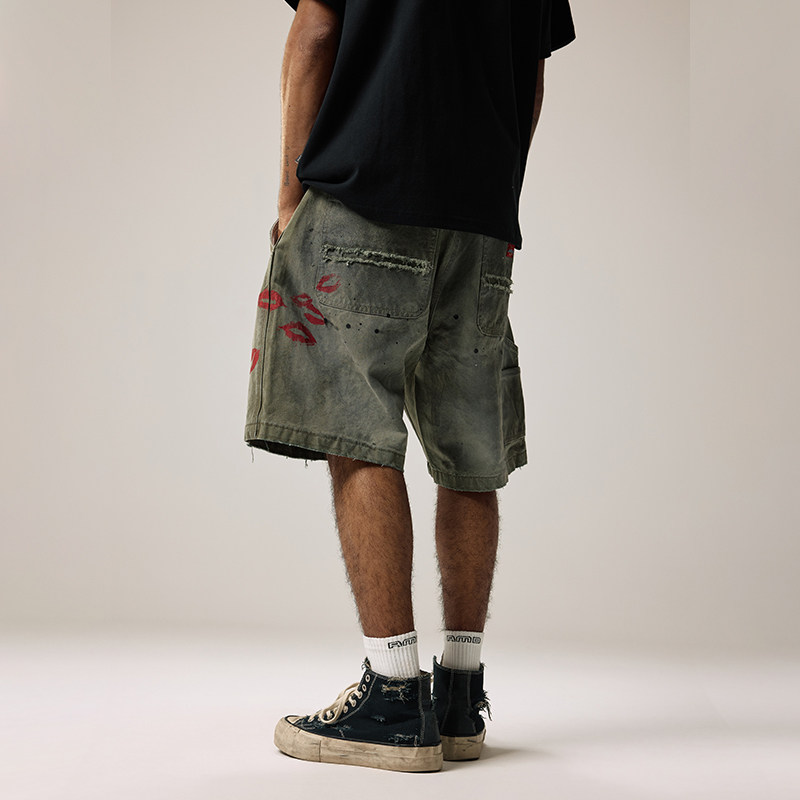 Remedy【D-kiss】国潮工装五分裤美式复古水洗做旧破洞休闲短裤男