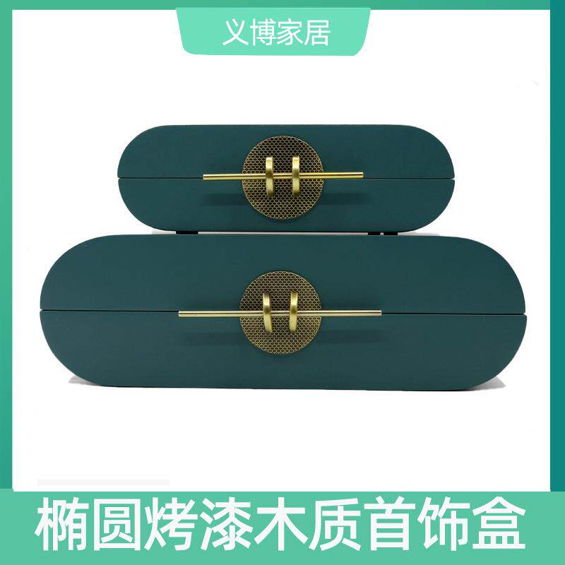 中国风首饰木质首饰盒 梳妆台样板房家居软装复古创意椭圆摆件品