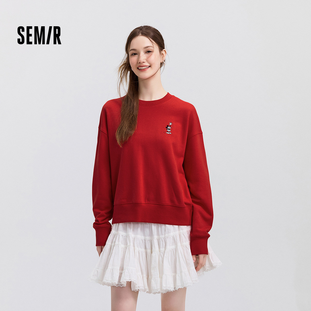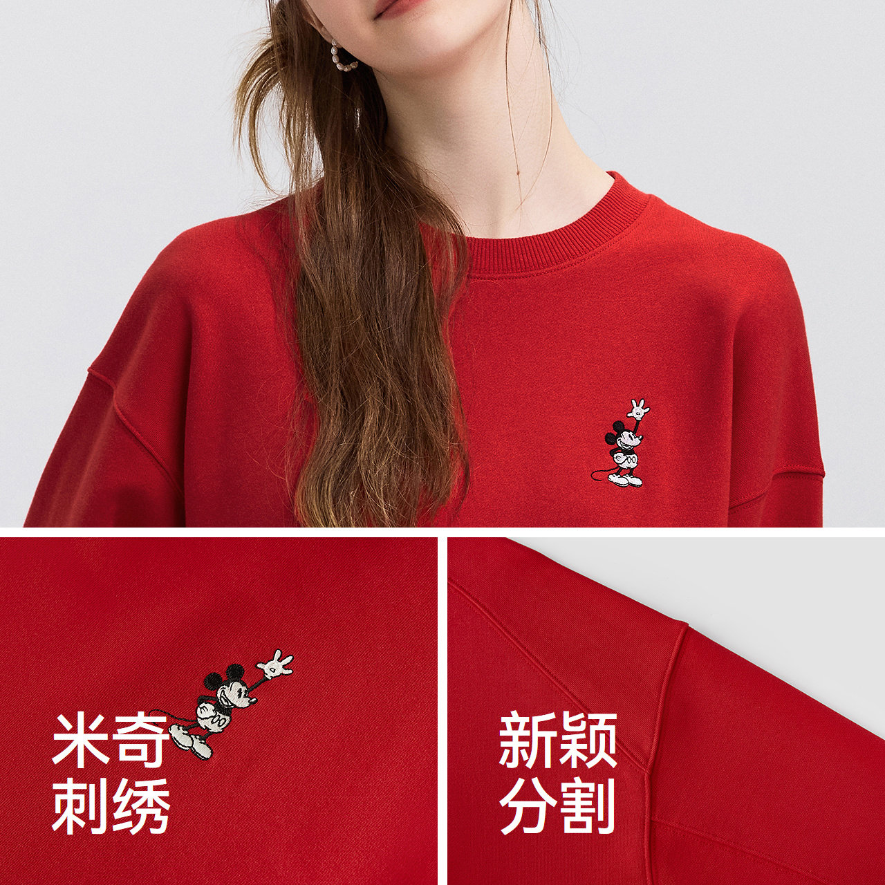 淘宝森马迪士尼合作系列卫衣女春季刺绣oversize分割打底衫潮流套头衫