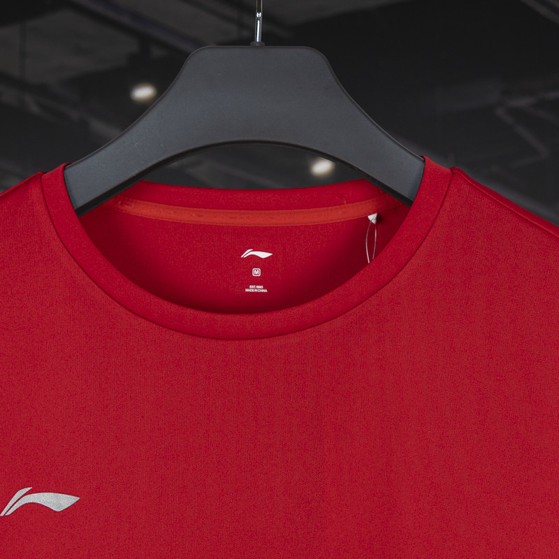 李宁短袖红色运动T恤2025年夏季速干冰丝圆领团购透气休闲上衣