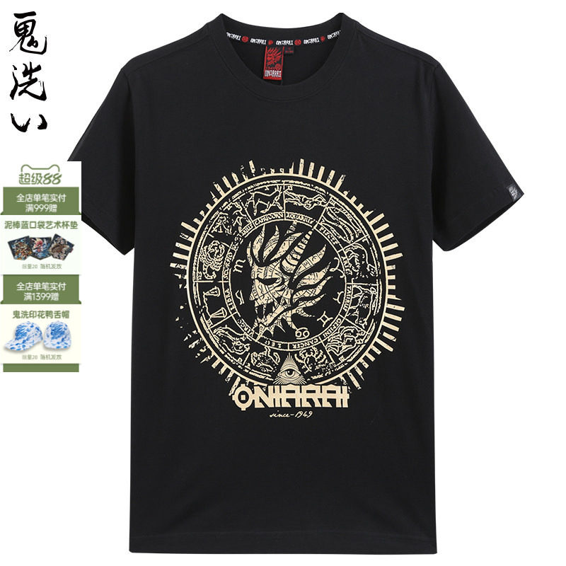 --------------------- oniarai鬼洗春夏黑金鬼头印花男士圆领短袖T恤男 B840063 【原售价】359元 【现售价】163元 【推荐理由】