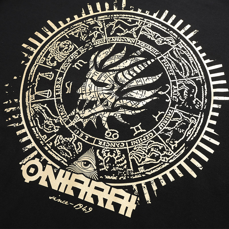 oniarai鬼洗春夏黑金鬼头印花男士圆领短袖T恤男 B840063