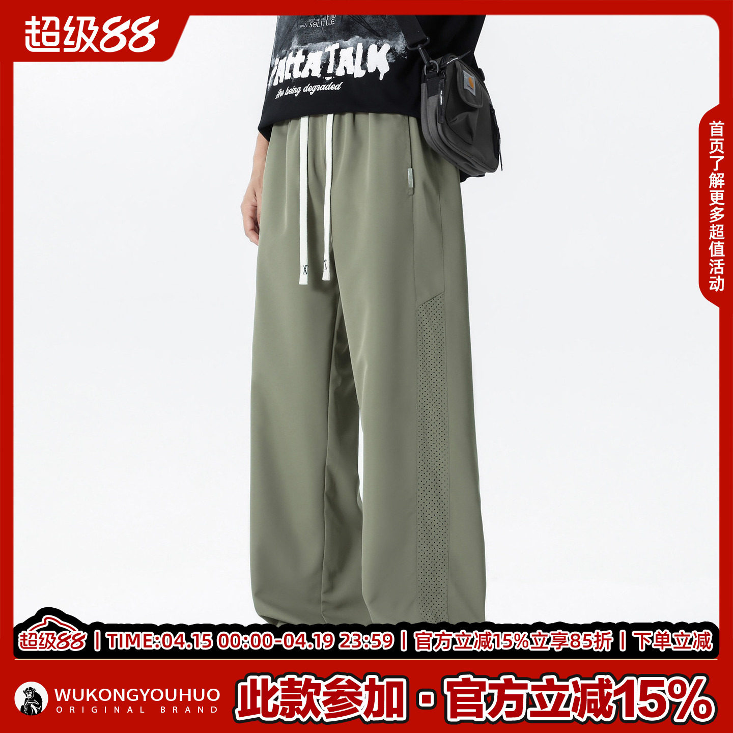 悟空有货潮牌夏季冰丝透气凉感休闲裤男街头宽松百搭阔腿运动长裤
