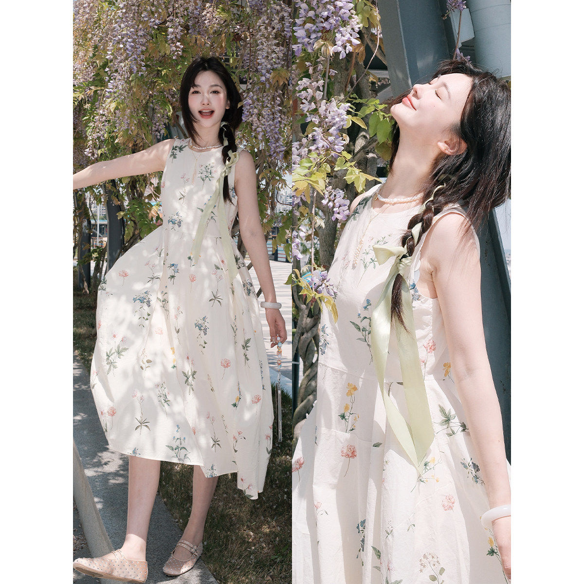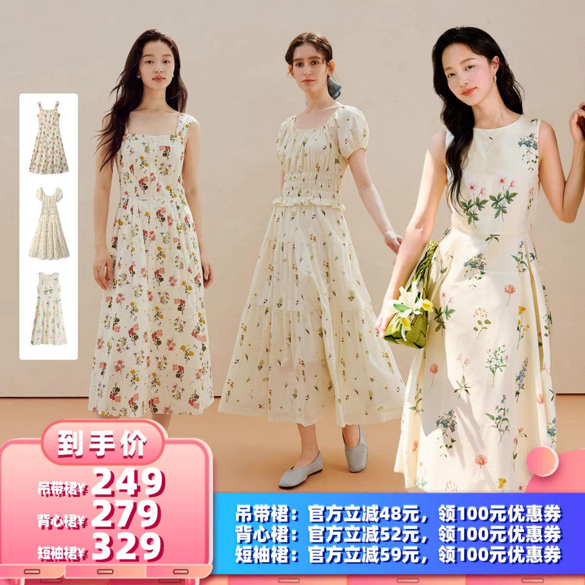 淘宝【所有女生的衣橱直播间】茵曼碎花无袖连衣裙/收腰泡泡袖连衣裙