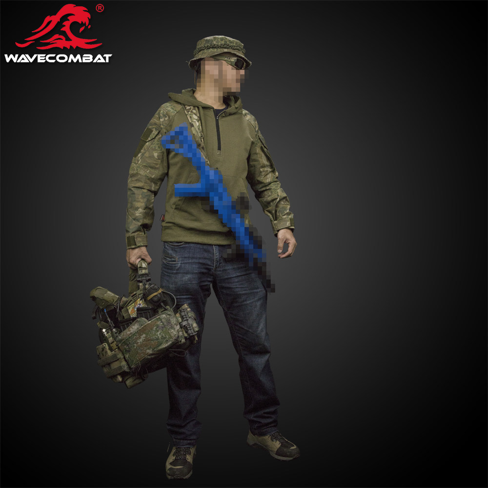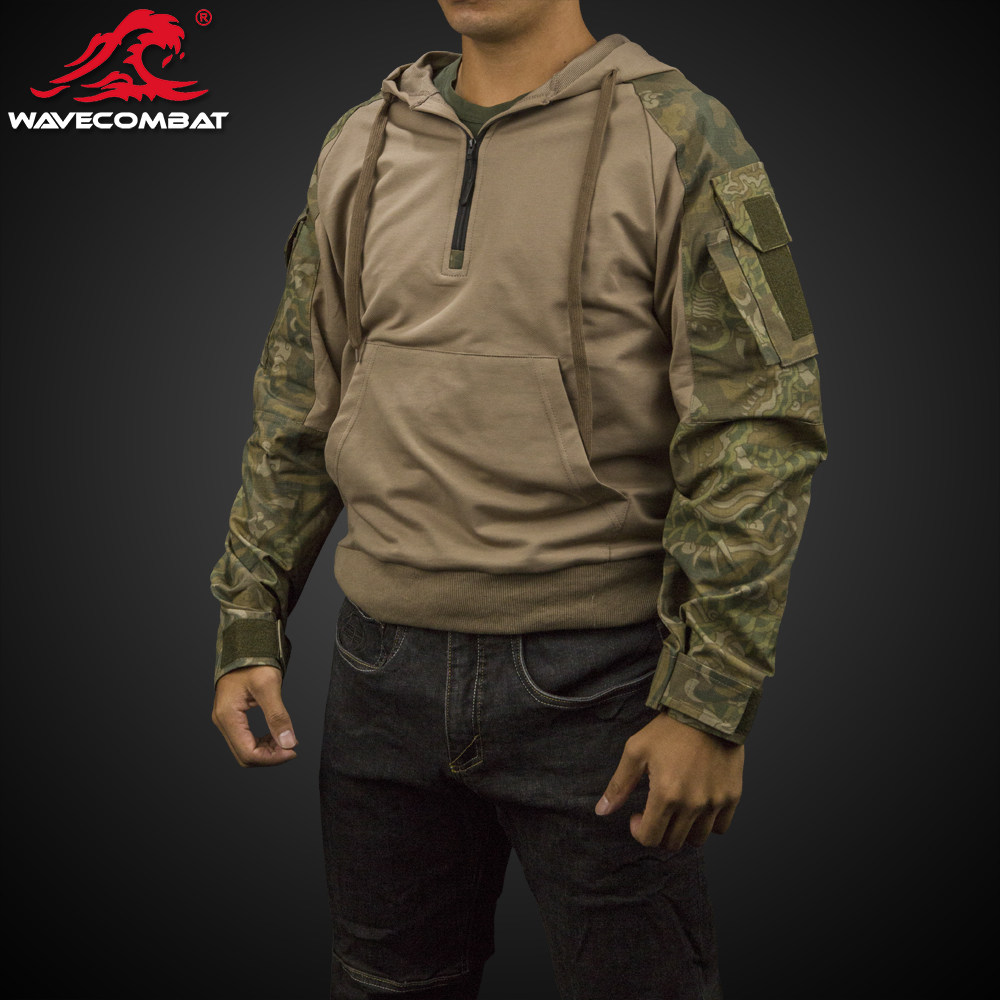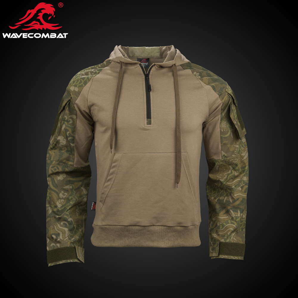 浪潮君物 龙纹迷彩拼色版套头战术卫衣 战术 迷彩 龙纹