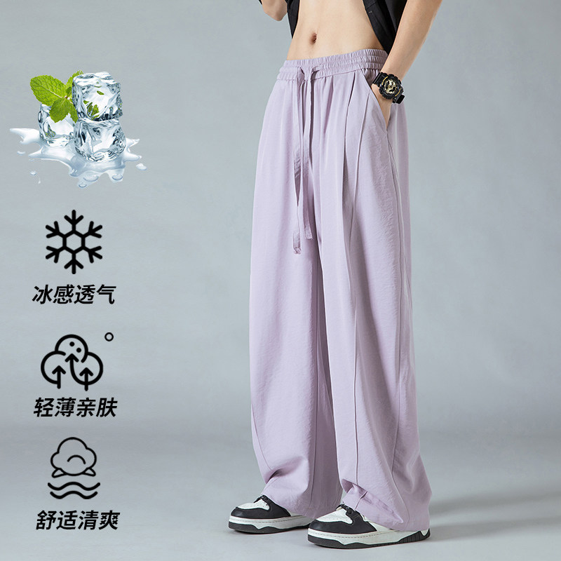 WASSUP ITIT宽松垂感休闲长裤直筒裤子男款日系冰丝阔腿裤男夏季