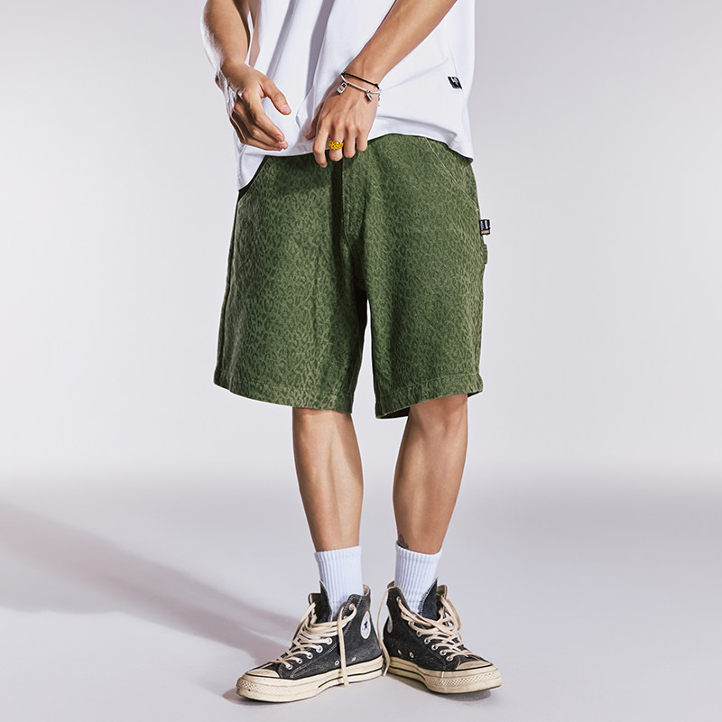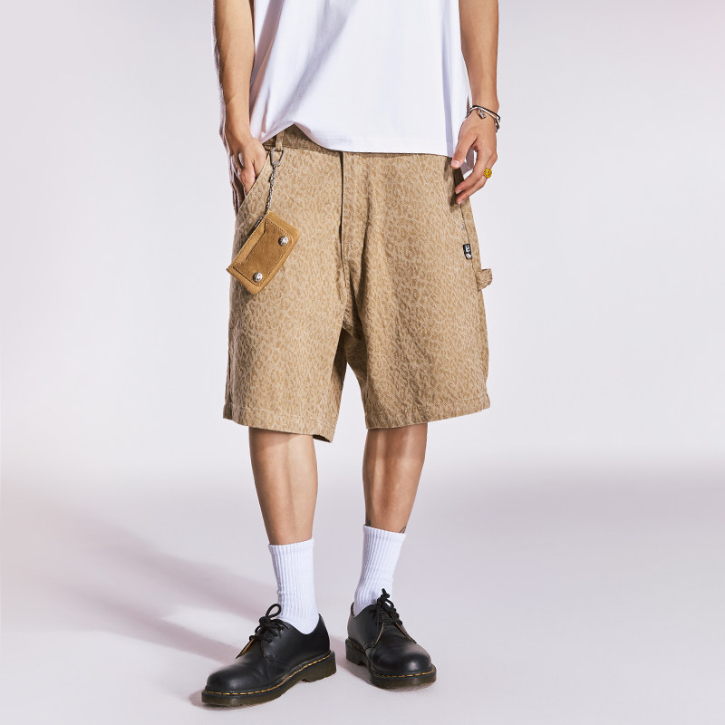Remedy美式潮牌宽松直筒豹纹工装短裤夏季新款国潮休闲五分裤男女